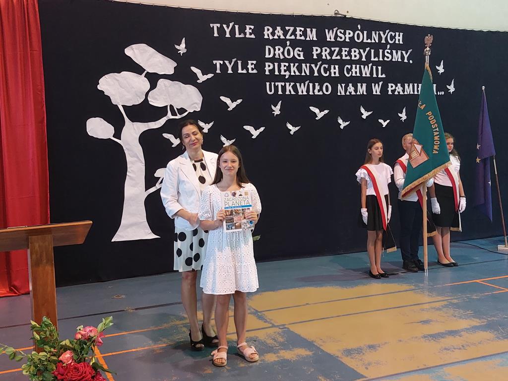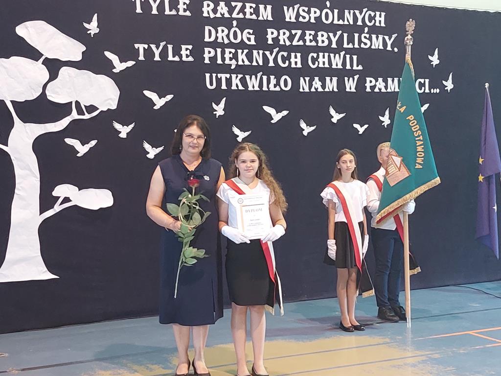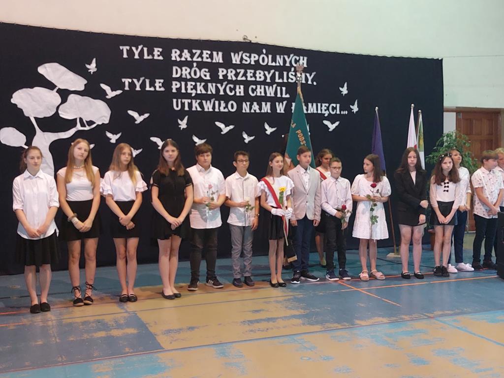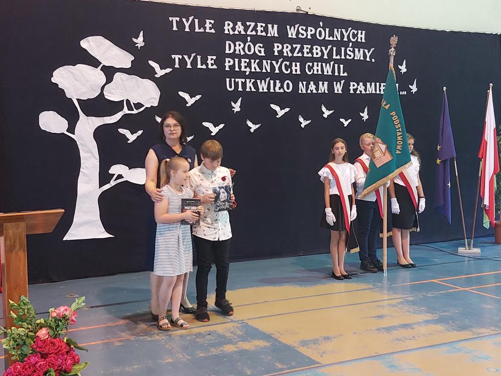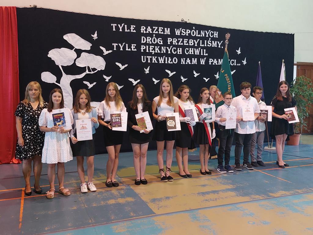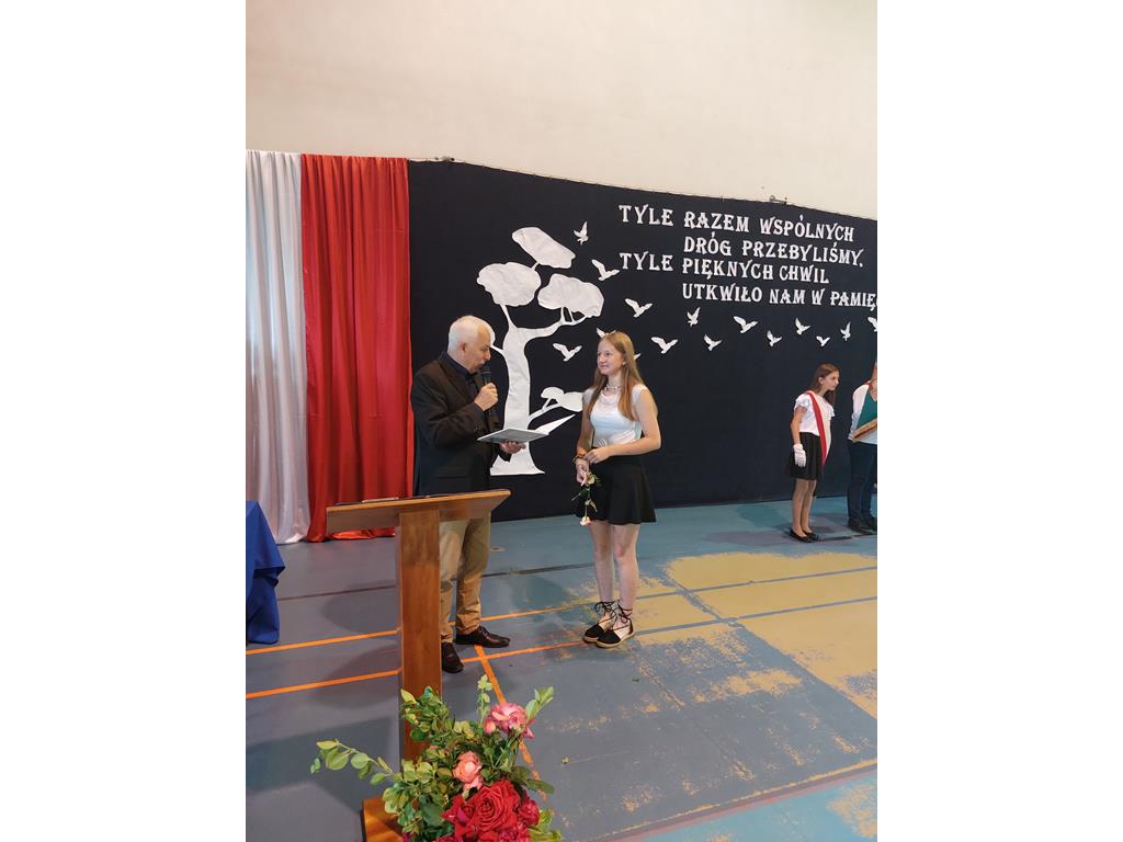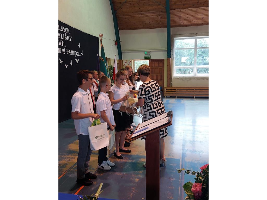 Wyróżnieni uczniowie otrzymali nagrody i dokonali wpisu do Złotej Księgi absolwentów szkoły, a ich rodzice – listy gratulacyjne. Wychowawca klasy ósmej – Anna Filipice wręczyła Świadectwa Ukończenia Szkoły pozostałym absolwentom.