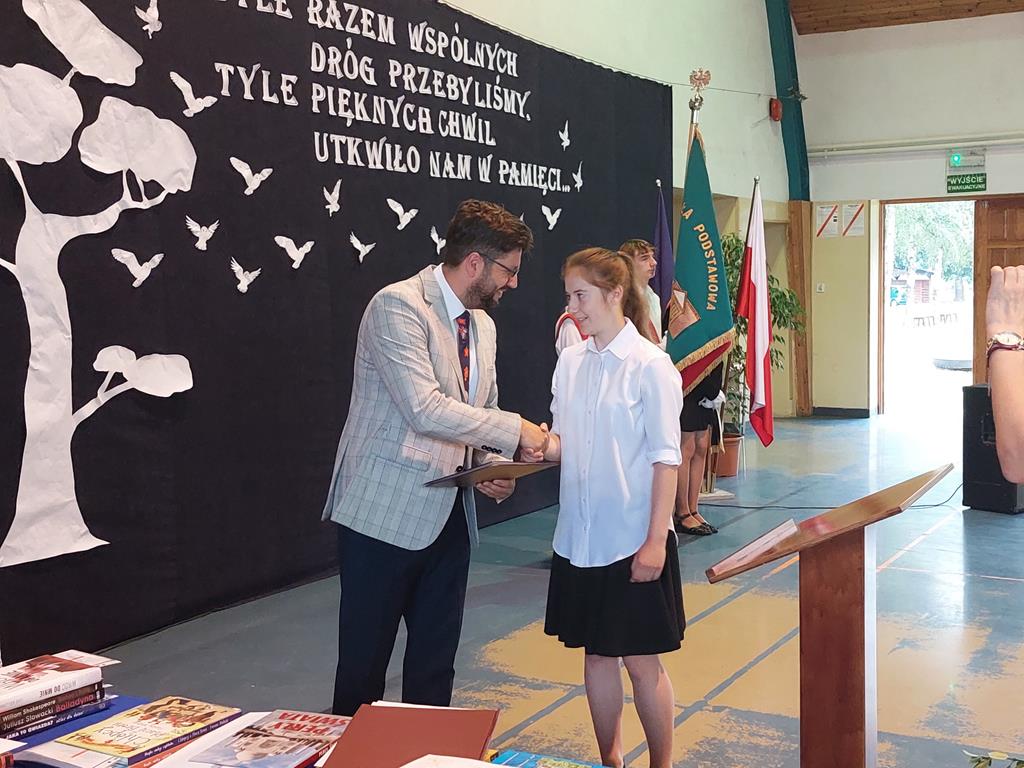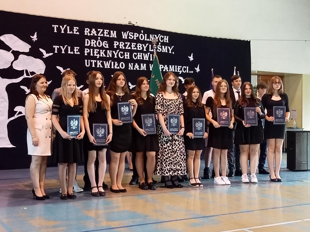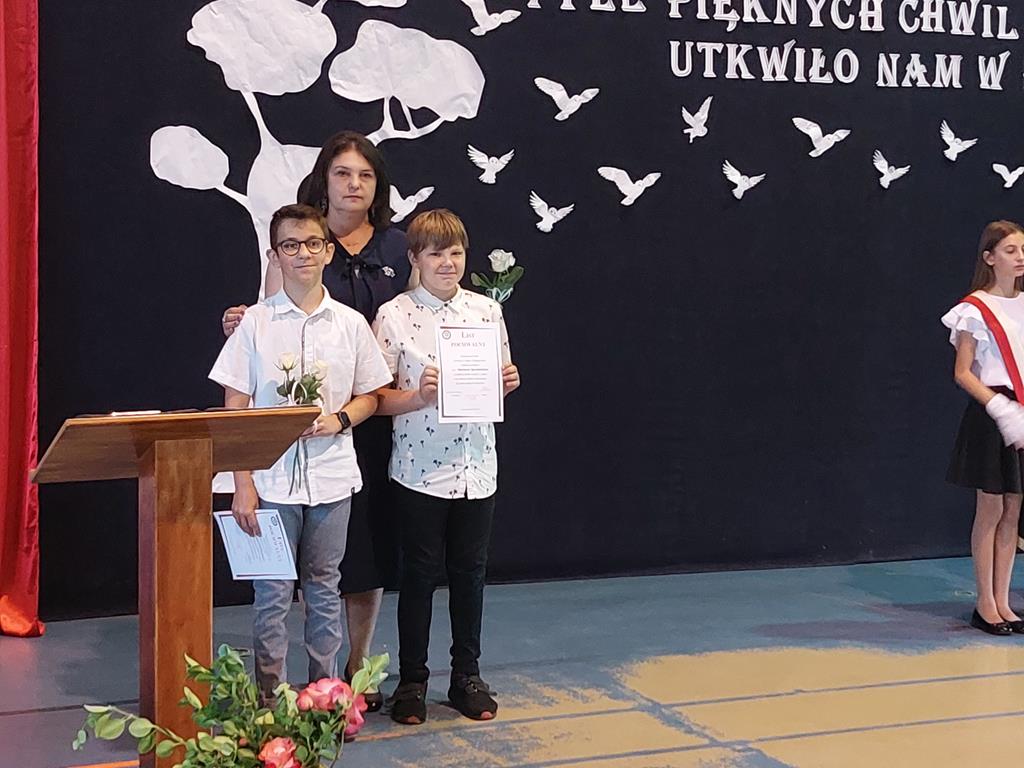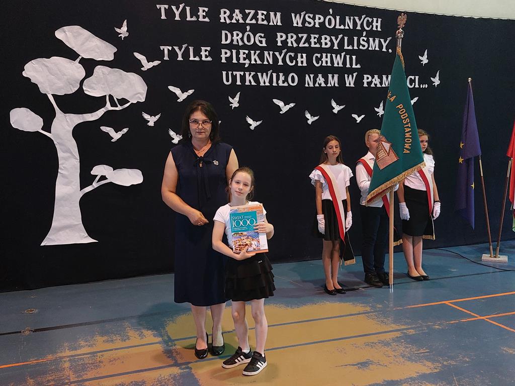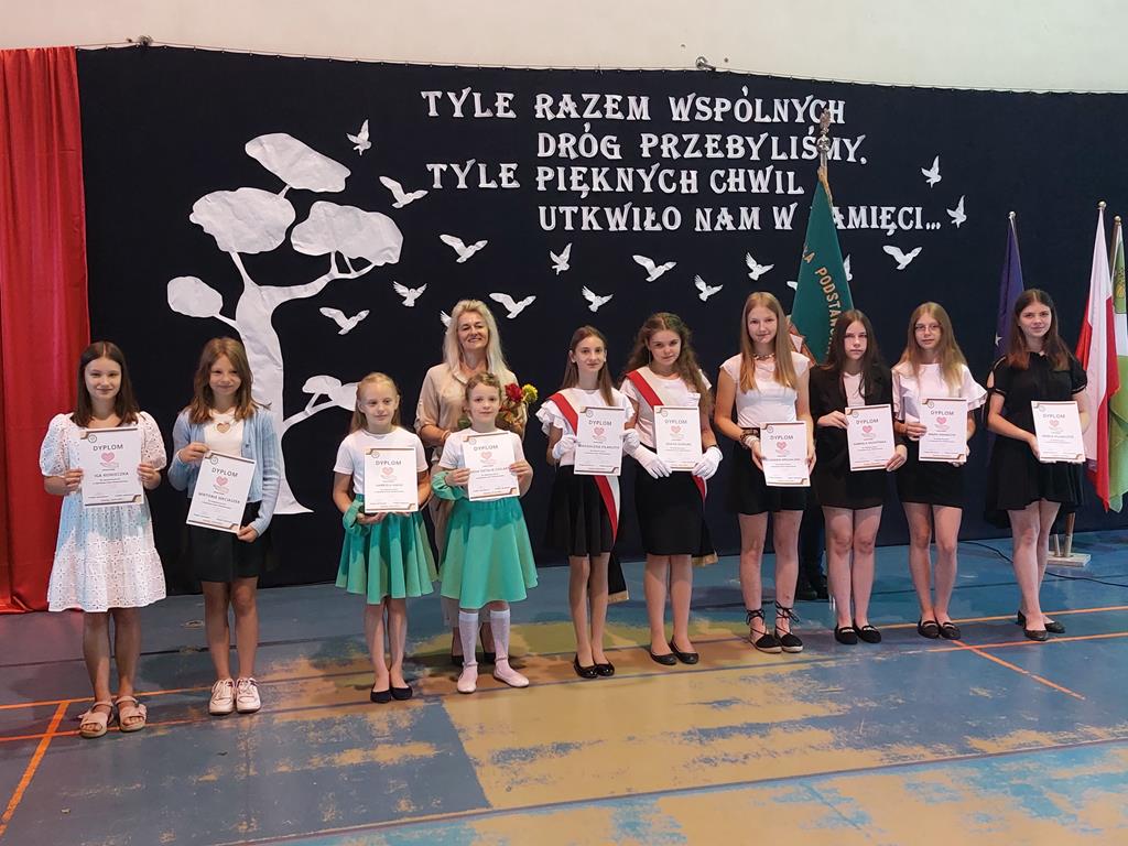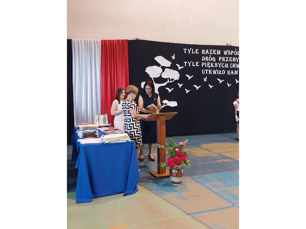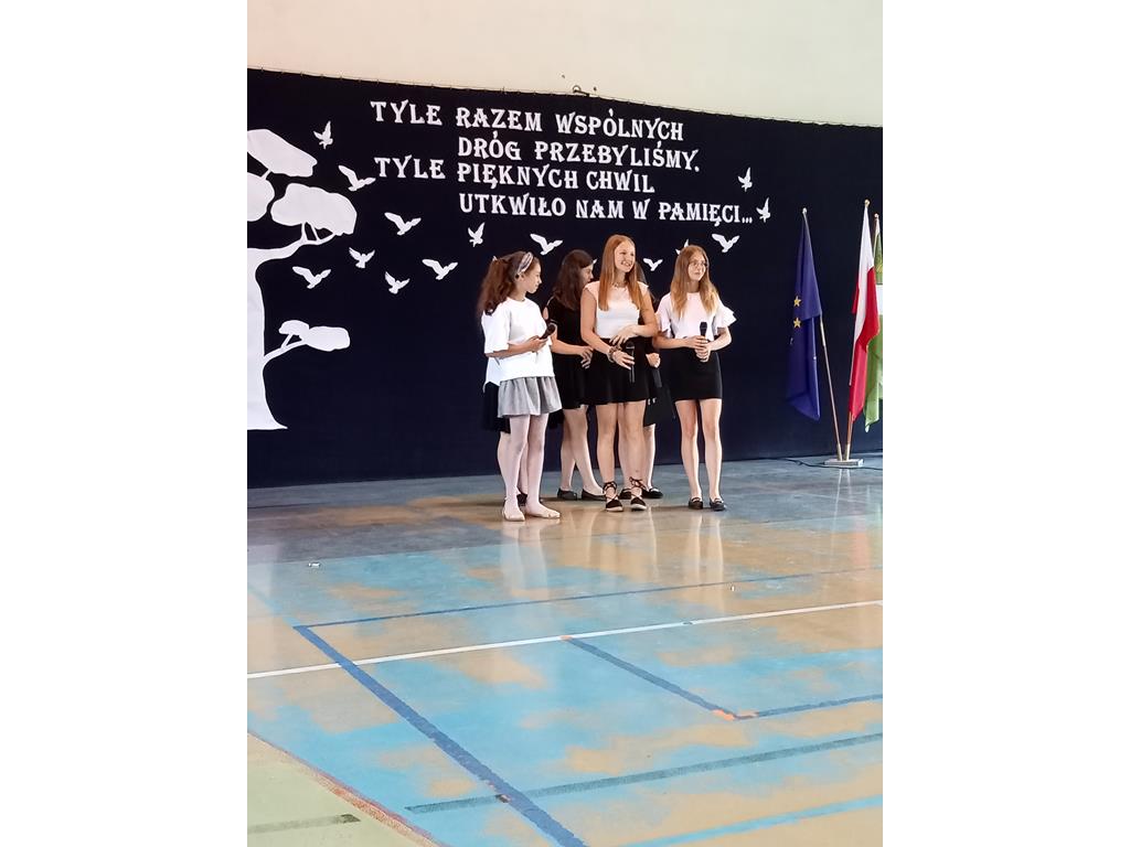 Wyróżnieni uczniowie otrzymali nagrody i dokonali wpisu do Złotej Księgi absolwentów szkoły, a ich rodzice – listy gratulacyjne. Wychowawca klasy ósmej – Anna Filipice wręczyła Świadectwa Ukończenia Szkoły pozostałym absolwentom.