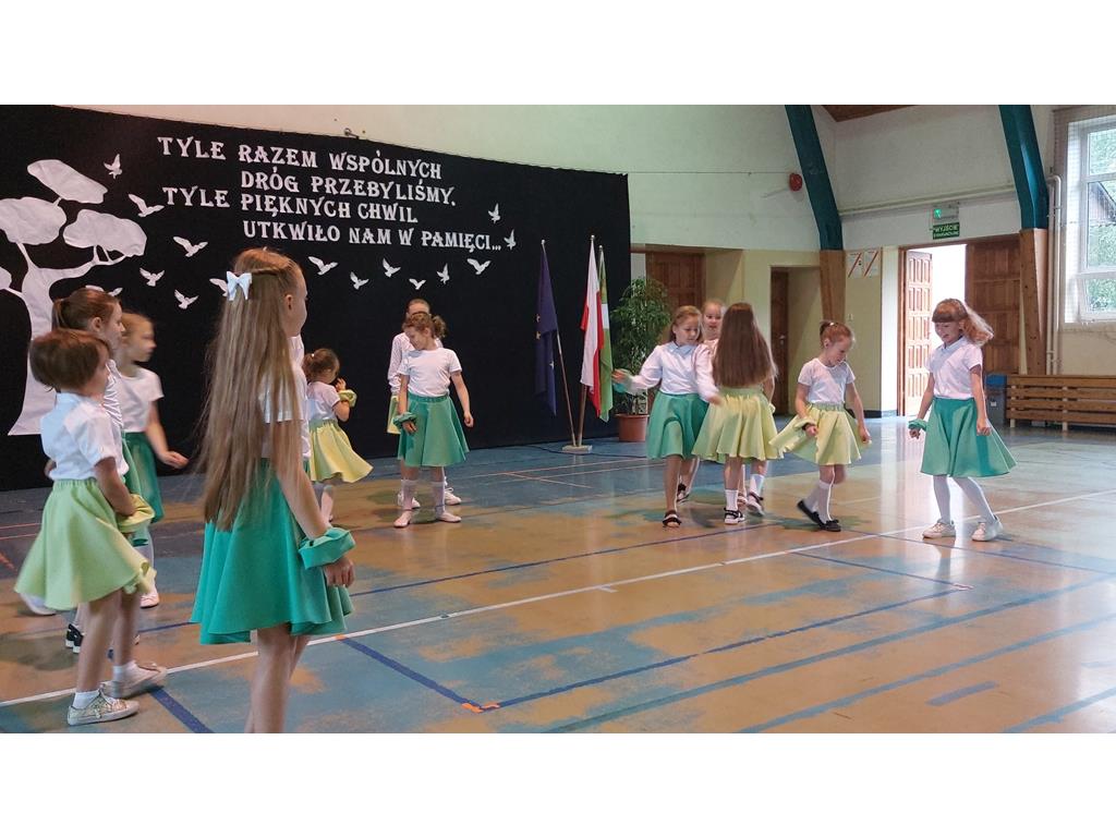 Po części oficjalnej nastąpiła część artystyczna, w której wystąpili uczennice klasy siódmej oraz pięknie zaprezentowało się kółko taneczne „Jaskółeczki”, a także zespół muzyczny z klasy II-III. Na koniec zaśpiewała uczennica klasy III Maya Ahmed z Panią Joanną Wiśną i chórkiem.