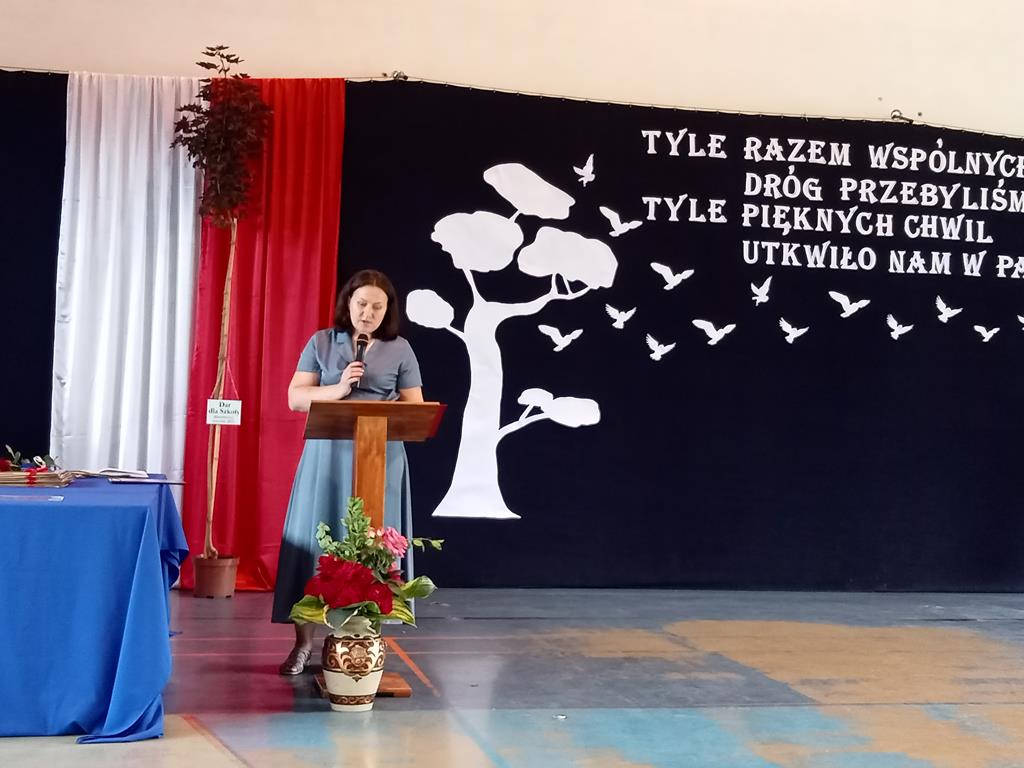 Na koniec tej części uroczystości głos zabrała Przewodnicząca Rady Rodziców- Pani Alina Maciaszek, która podziękowała za pracę i życzyła udanych wakacji.