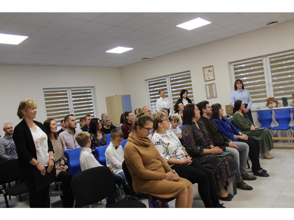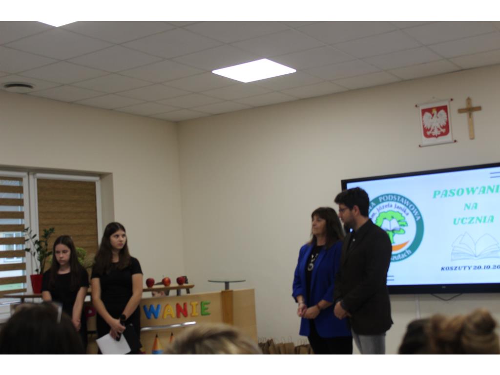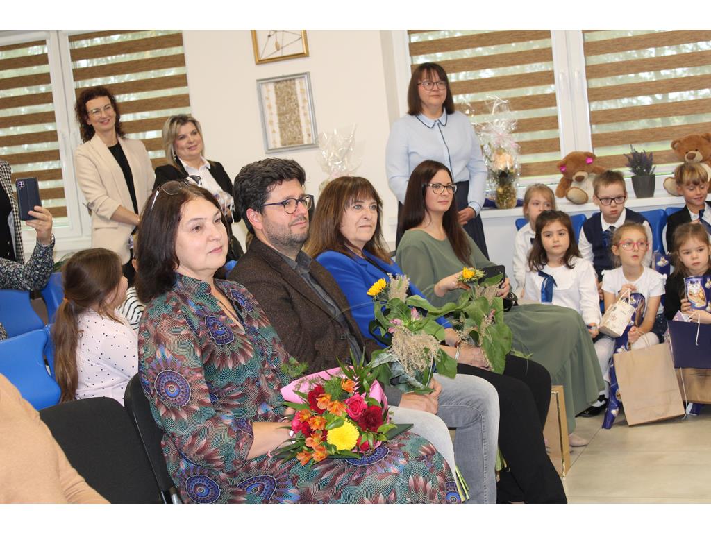 Na uroczystość przybyli zaproszeni goście: Wicewójt Gminy Słupca pan Cezary Przybylski, Dyrektor Centrum Usług Wspólnych pani Jarosława Kobos, przewodnicząca Rady Rodziców Anna Przesmycka, Dyrektor szkoły pani Agata Kopczyńska , nauczyciele i rodzice uczniów klas pierwszych oraz uczniowie klasy drugiej.