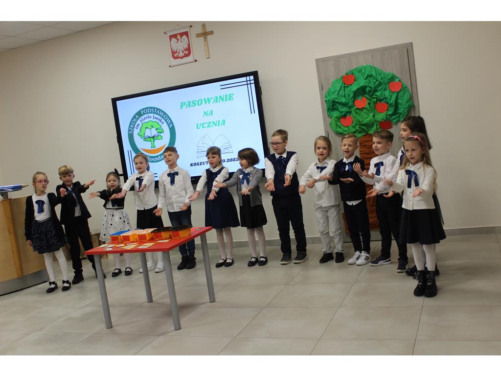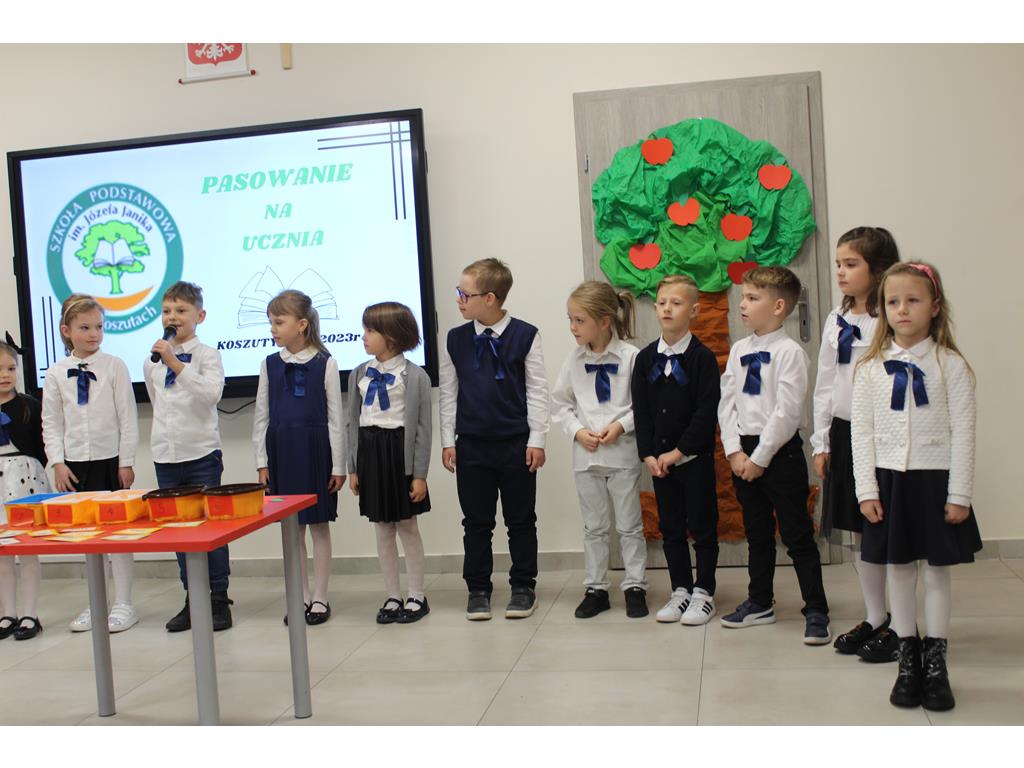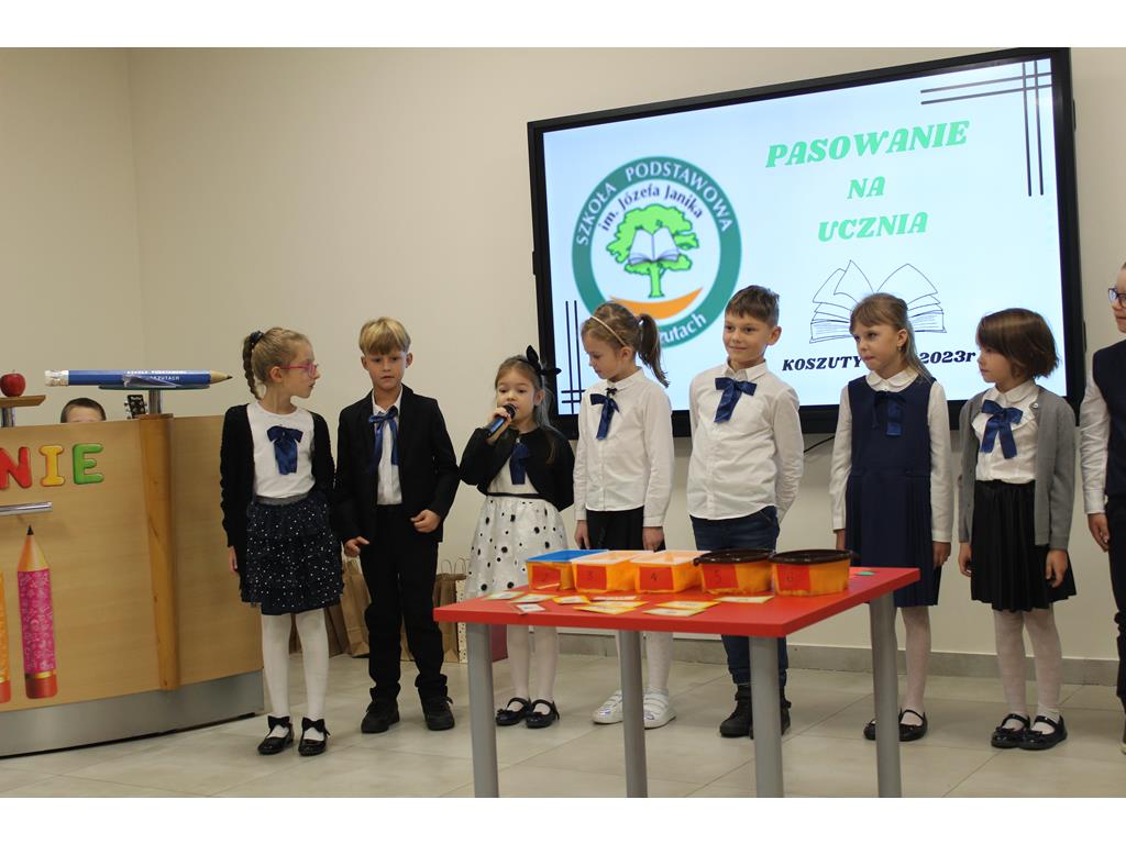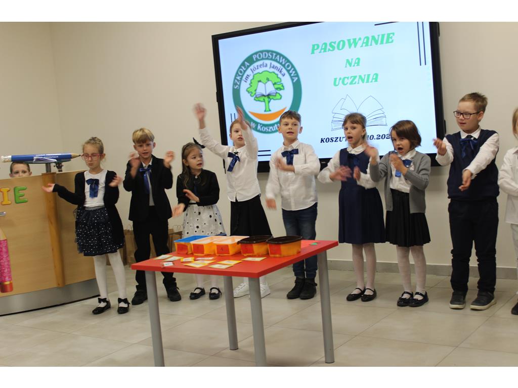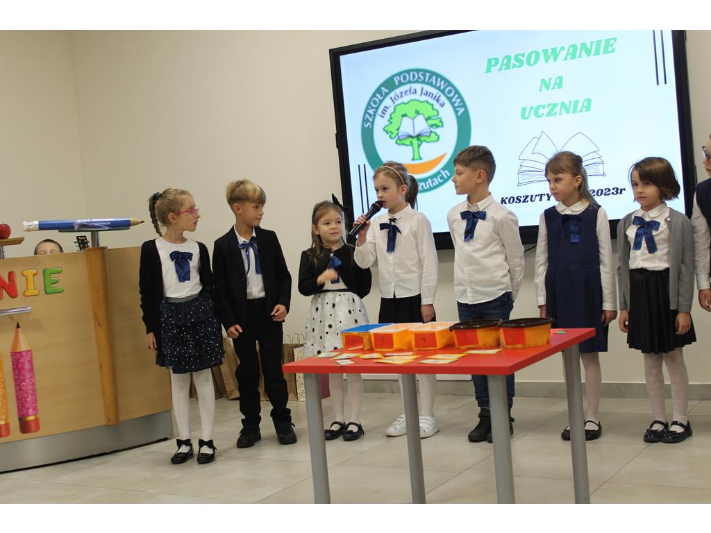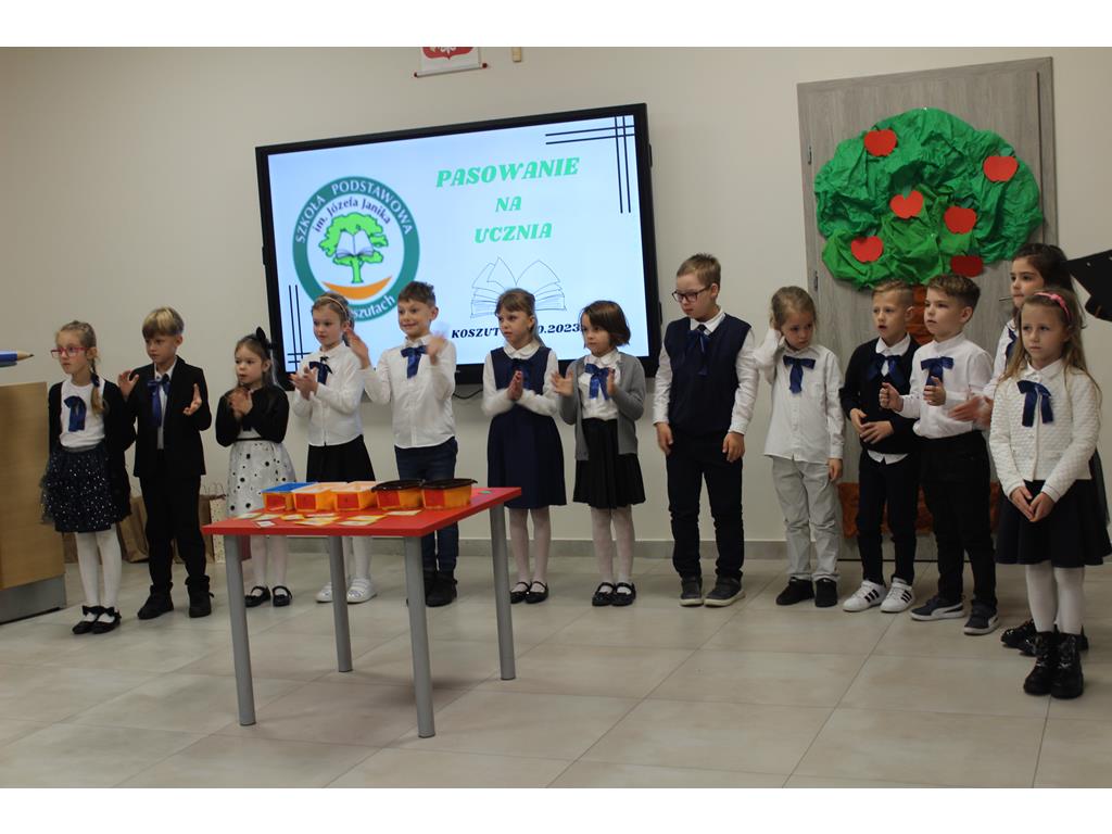 Doniosłym momentem uroczystości było ślubowanie pierwszoklasistów, które wzbudziło wiele emocji. Aktu pasowania dokonała pani Dyrektor Agata Kopczyńska specjalnym kolorowym ołówkiem. Tym samym pierwszaki zostały włączone do społeczności uczniowskiej Szkoły Podstawowej im. J. W. Janika w Koszutach. Dowodem były akty mianowania na ucznia wręczone dzieciom przez wychowawczynię Annę Andryszak.