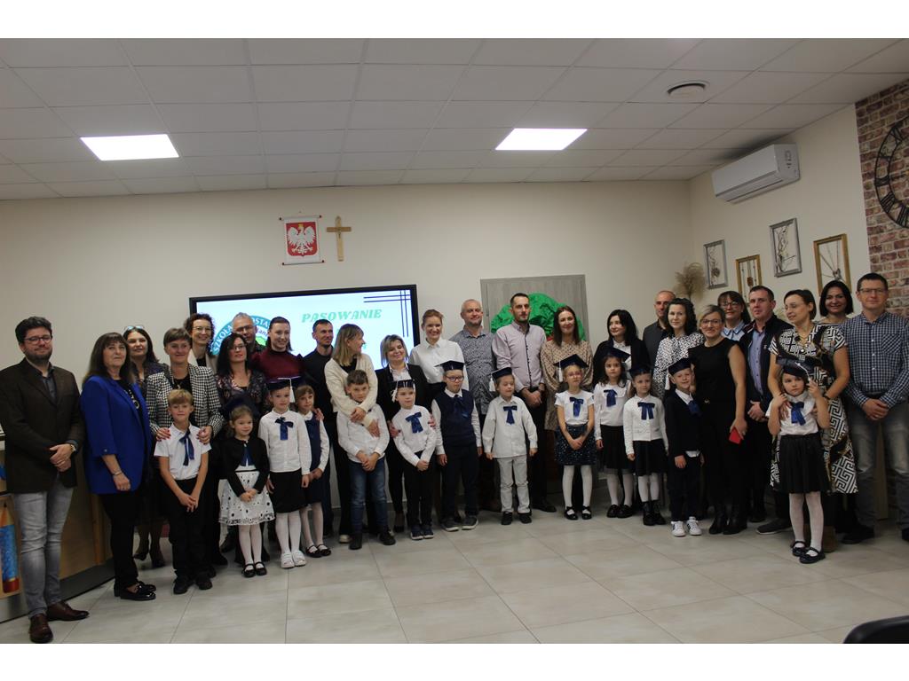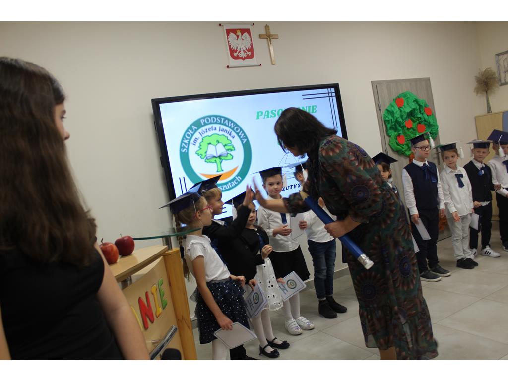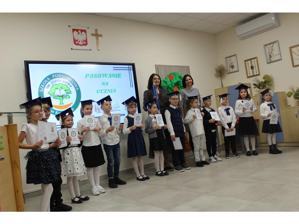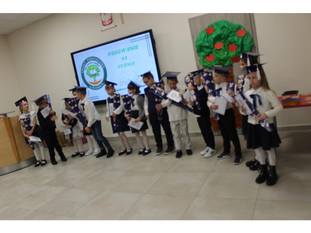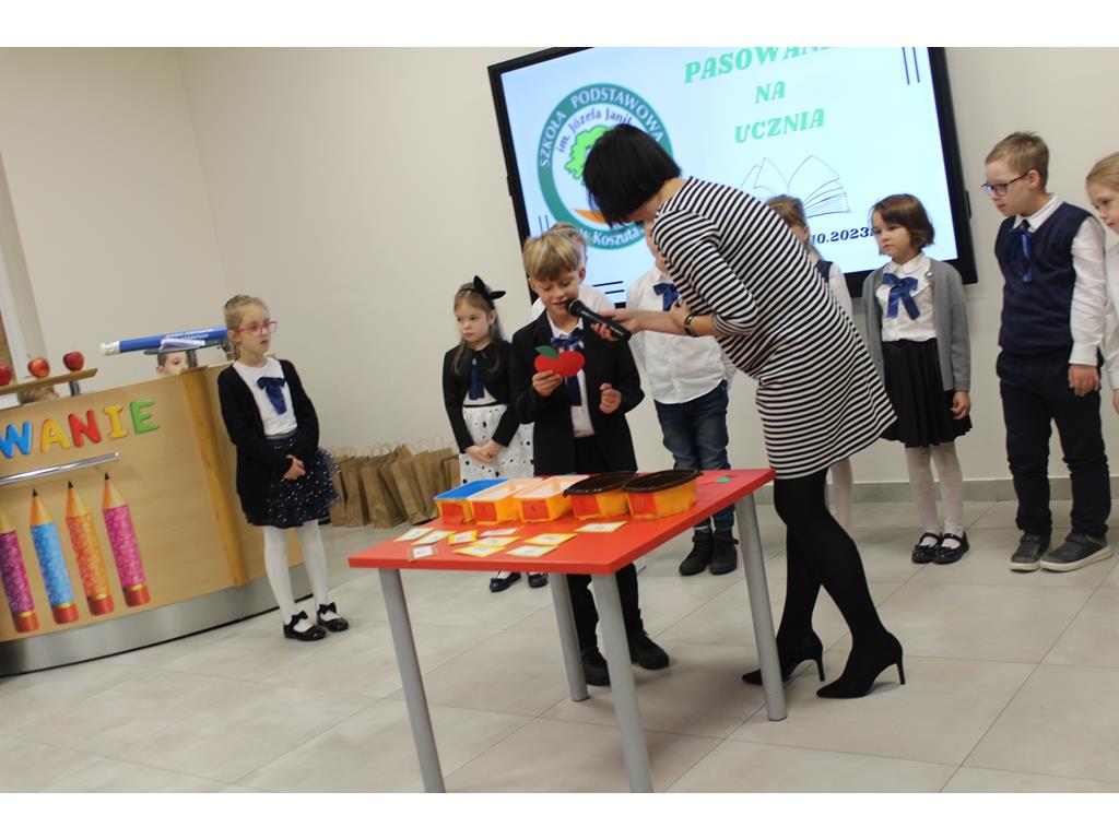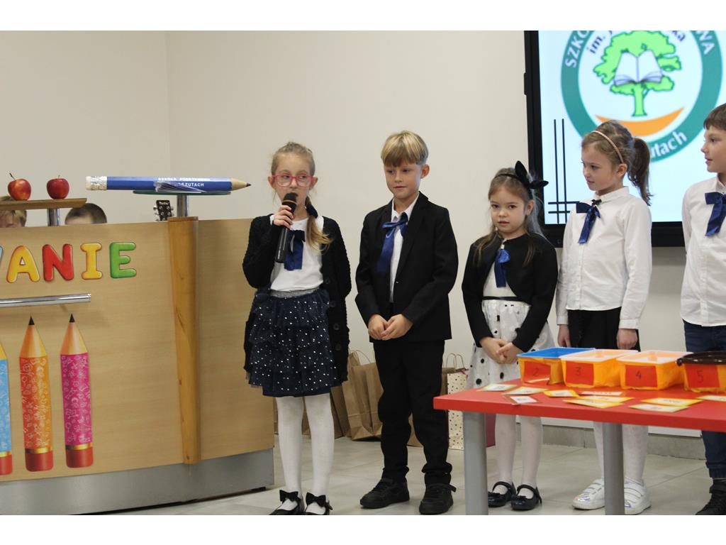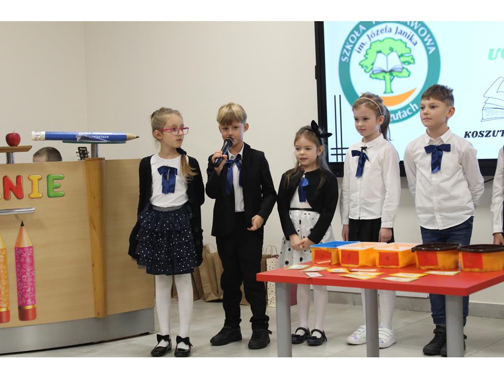 Doniosłym momentem uroczystości było ślubowanie pierwszoklasistów, które wzbudziło wiele emocji. Aktu pasowania dokonała pani Dyrektor Agata Kopczyńska specjalnym kolorowym ołówkiem. Tym samym pierwszaki zostały włączone do społeczności uczniowskiej Szkoły Podstawowej im. J. W. Janika w Koszutach. Dowodem były akty mianowania na ucznia wręczone dzieciom przez wychowawczynię Annę Andryszak.