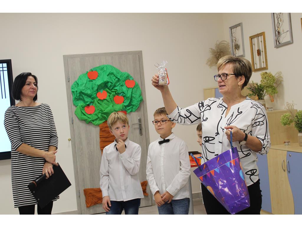 Najmłodsi otrzymali wspaniałe upominki ufundowane przez panią Dyrektor, Urząd Gminy Słupca, Radę Rodziców, Samorząd Uczniowski, Bank Spółdzielczy w Słupcy oraz starszych kolegów z klasy drugiej, Po zakończeniu części oficjalnej wszyscy uczestnicy zostali zaproszeni na słodki poczęstunek przygotowany przez rodziców.