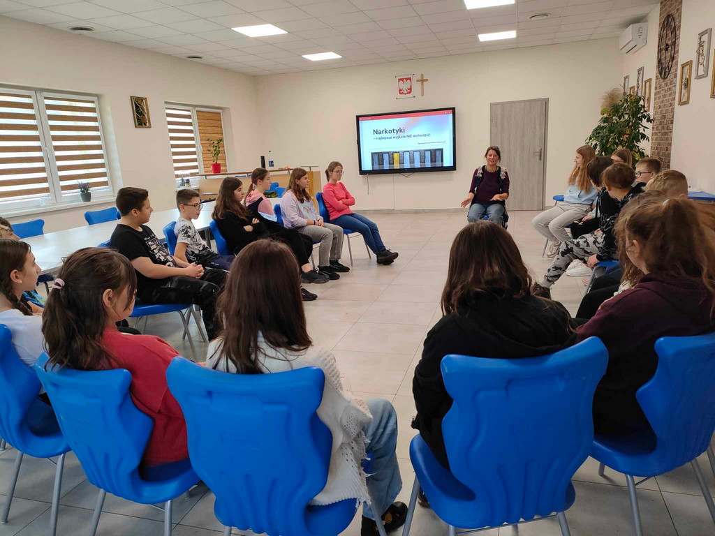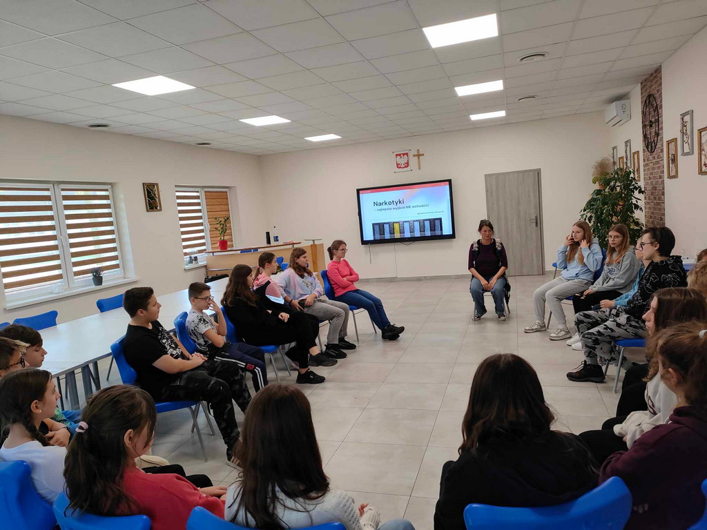 W dniu 24.10.2023r. uczniowie klasy VI i VIII uczestniczyli w warsztatach profilaktycznych dotyczących narkotyków i dopalaczy. Warsztaty te zostały przeprowadzone przez panią Agnieszkę Kowalską-Pastuszek.