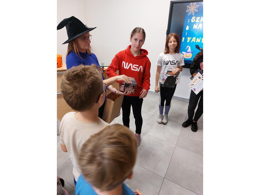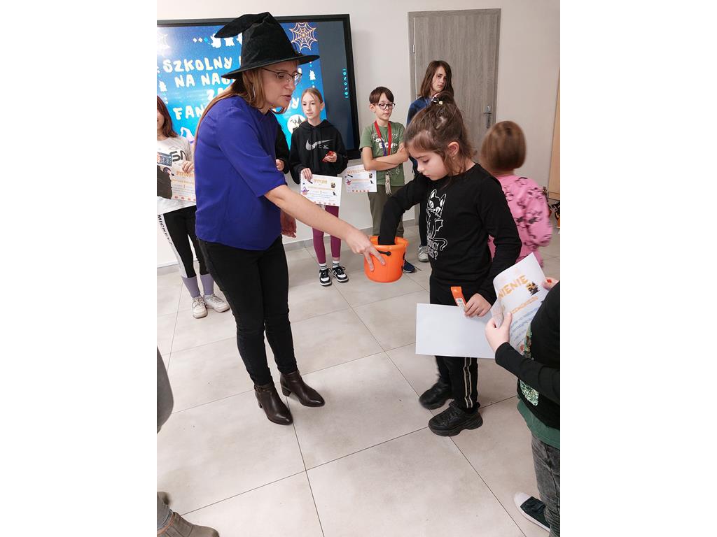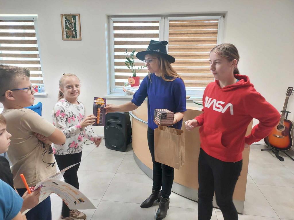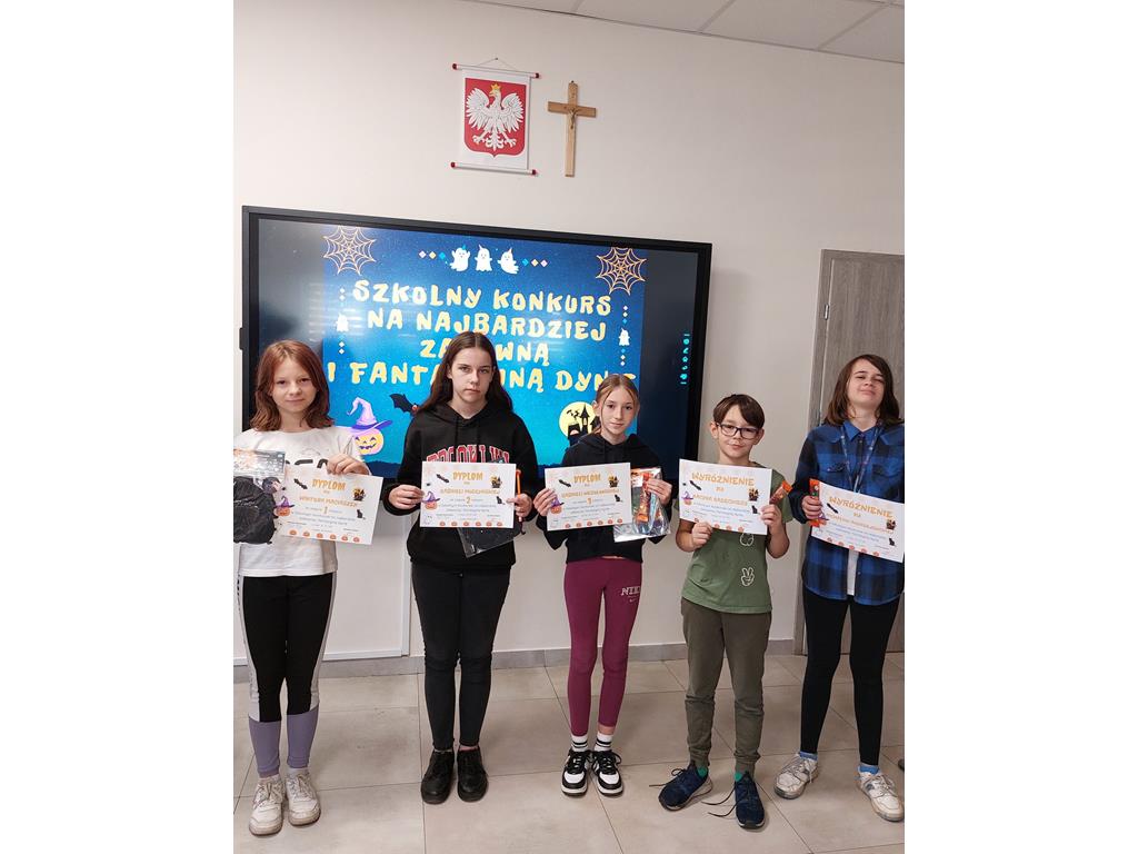 Następnie, Komisja Konkursowa wręczyła zwycięzcom i wyróżnionym pamiątkowe dyplomy oraz drobne upominki z motywem Halloween. Każdy uczestnik konkursu otrzymał również słodki upominek w myśl angielskiego hasła ,, TRICK OR TREAT” / ,,CUKIEREK ALBO PISKUS”.