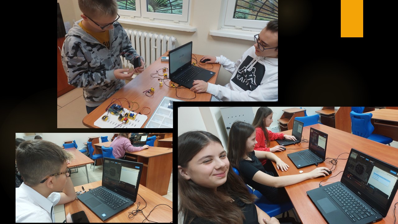 Dzieci z oddziału przedszkolnego i uczniowie klas I-VIII przez tydzień uczestniczyli w zajęciach wykorzystujących programowanie w nauce i zabawie. Nabywali kompetencje związane z kodowaniem, rozwijali kreatywność, logiczne myślenie oraz ciekawość. Poprzez gry i zabawy uczyli się kodowania, rozwiązując ciekawe zadania o różnym stopniu trudności. Najmłodsi zaczęli od przygotowania planszy, po której poruszał się kodowany przez nich robot. Uczniowie klas starszych zajęli się programowaniem w języku Scratch, kodowaniem w Internecie, wykorzystując takie strony, jak: nowoczesnenauczanie.edu.pl, code.org., CodeCombat.com, a także programowali poprzez popularne bajki i gry takie jak: Minecraft czy Roblox. Nie zabrakło też nauki robotyki, uczniowie klasy IV użyli do tego klocków lego. Dzięki swojej kreatywności zbudowali pojazd, który po odpowiednim zakodowaniu poruszał się. Chłopcy z klasy VIII natomiast podjęli się programowania z mikrokontrolerem dzięki zestawowi BeCreo, służącemu do nauki programowania, robotyki i mechatroniki. Oczywiście największą atrakcją cieszyły się zajęcia z wykorzystaniem robotów.
