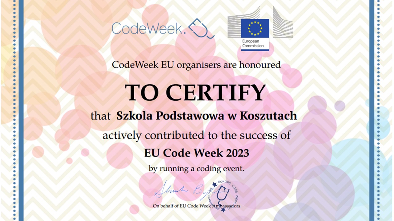 Szkoła Podstawowa w Koszutach już od sześciu lat aktywnie uczestniczy w organizowanym na terenie naszej placówki, Europejskim Tygodniu Kodowania – CodeWeek, w tym roku pod hasłem „Z kodowaniem od najmłodszych lat”. Celem akcji jest popularyzacja i promocja nauki programowania.