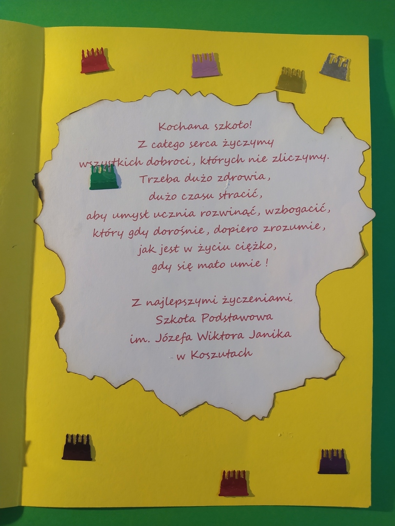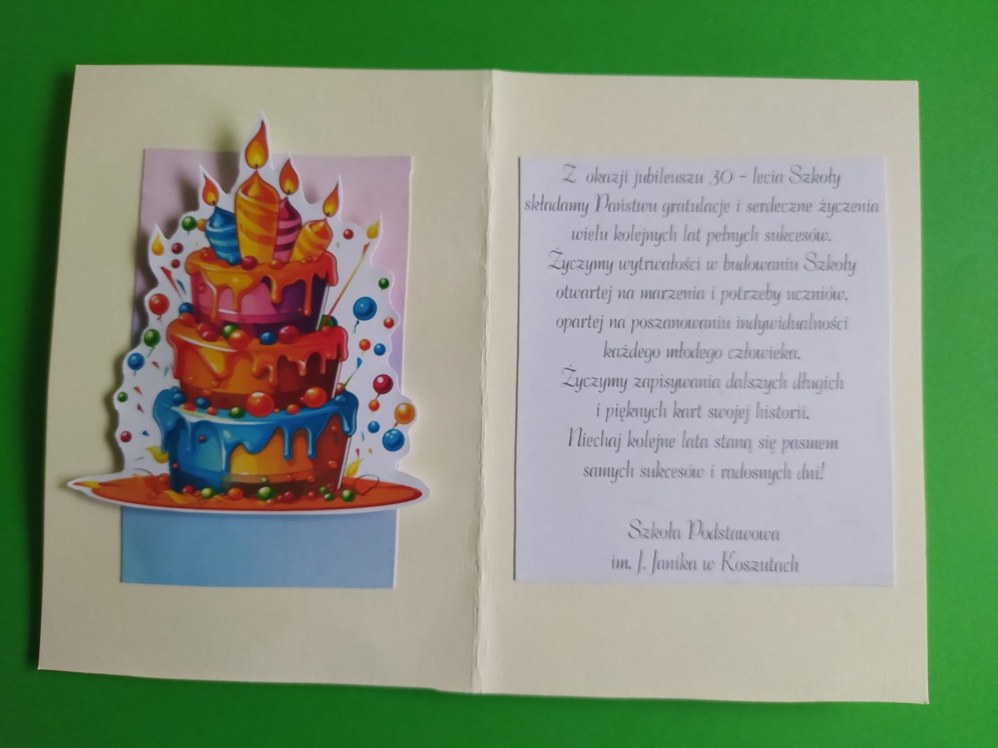 W listopadzie Samorząd Uczniowski włączył się we współpracę oraz wsparcie akcji pt. „ 360 kartek z okazji 30-lecia Zespołu Szkół w Kamionce”. Uczniowie naszej szkoły stworzyli przepiękne laurki z życzeniami, które wysłaliśmy pocztą. Za udział otrzymaliśmy specjalne podziękowania.