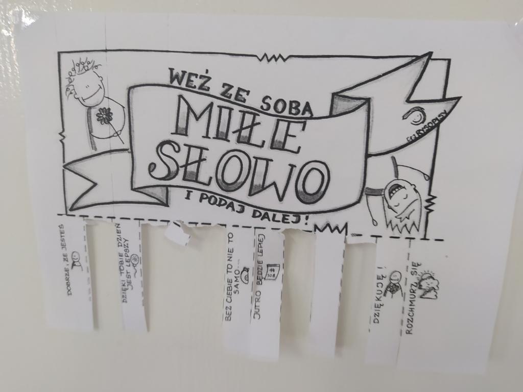 Po raz kolejny w naszej szkole Samorząd Uczniowski zorganizował Światowy Dzień Życzliwości. Główna ideą tego dnia jest uzmysłowienie i przypomnienie ludziom o tym, że tylko wzajemna życzliwość może stać sie podstawą do budowania pokoju i pomyślnych relacji między ludźmi na całym świecie. Wystarczy skierować do drugiego człowieka uśmiech, miłe słowo czy ciepłe spojrzenie. Dlatego na drzwiach każdej klasy przyklejona została specjalna wydzieranka z pozytywnymi zwrotami do przekazania innej osobie. Na holu szkoły położona była specjalna skrzynka z napisem: „Poczta dobrych wiadomości”, do której uczniowie mogli wrzucać pozdrowienia lub miłe słowa do kolegów, koleżanek, nauczycieli i pracowników szkoły. Na zakończenie tygodnia listy trafiły do swoich adresatów . Warto uwierzyć, że w każdym z nas drzemią niewyczerpane pokłady dobra i tylko wystarczy okazać komuś bezinteresowną życzliwość.