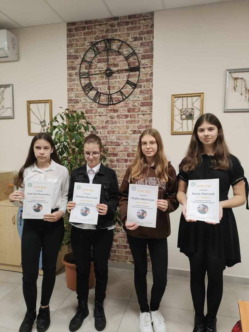 Za udział w konkursie każdy uczestnik otrzymał dyplom, pochwałę pisemną do dziennika oraz ocenę celującą.