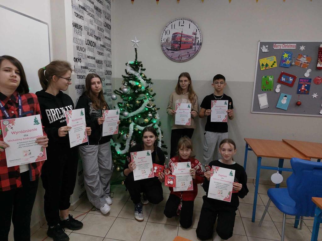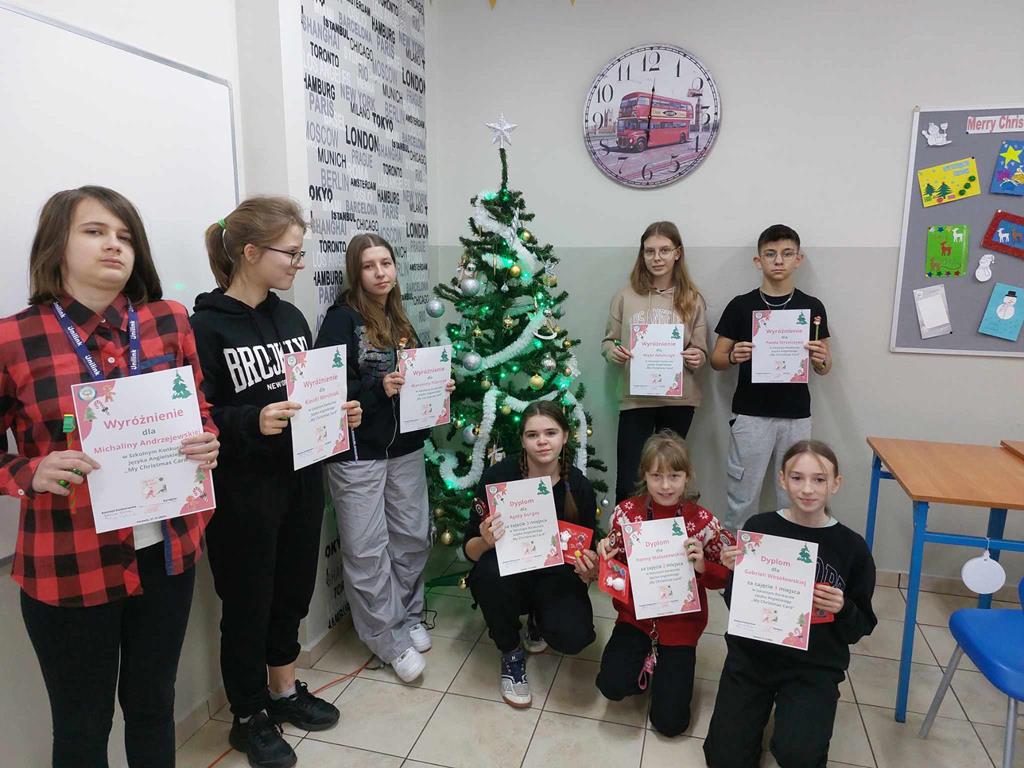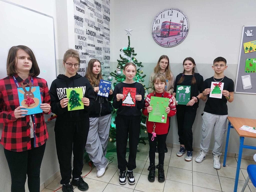 W dniu 21.12.2023r. został rozstrzygnięty Szkolny Konkurs Języka Angielskiego ,,My Christmas Card- Najpiękniejsza Kartka Bożonarodzeniowa”. Konkurs był przeznaczony dla klas IV-VIII oraz polegał na wykonaniu pracy plastyczno-językowej w formie kartki świątecznej w języku angielskim.