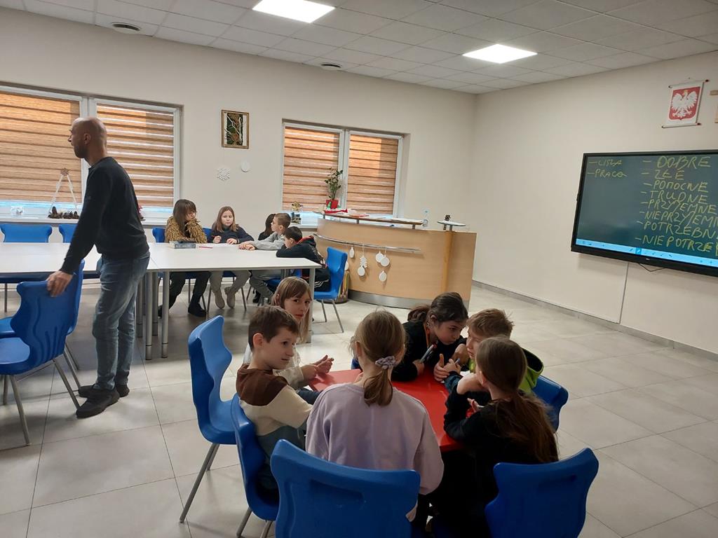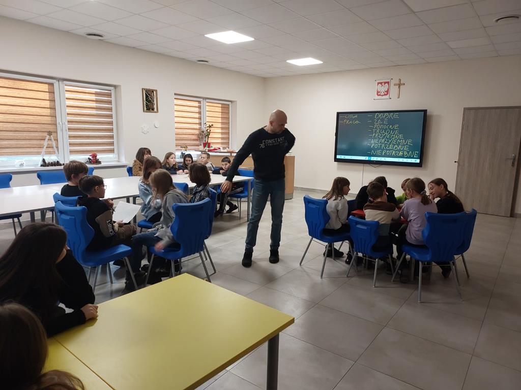 10 stycznia uczniowie klas IV – VI uczestniczyli w warsztatach przeprowadzonych przez psychologa z Poradni Psychologiczno – Pedagogicznej w Słupcy Pana Marcina Dybalskiego.