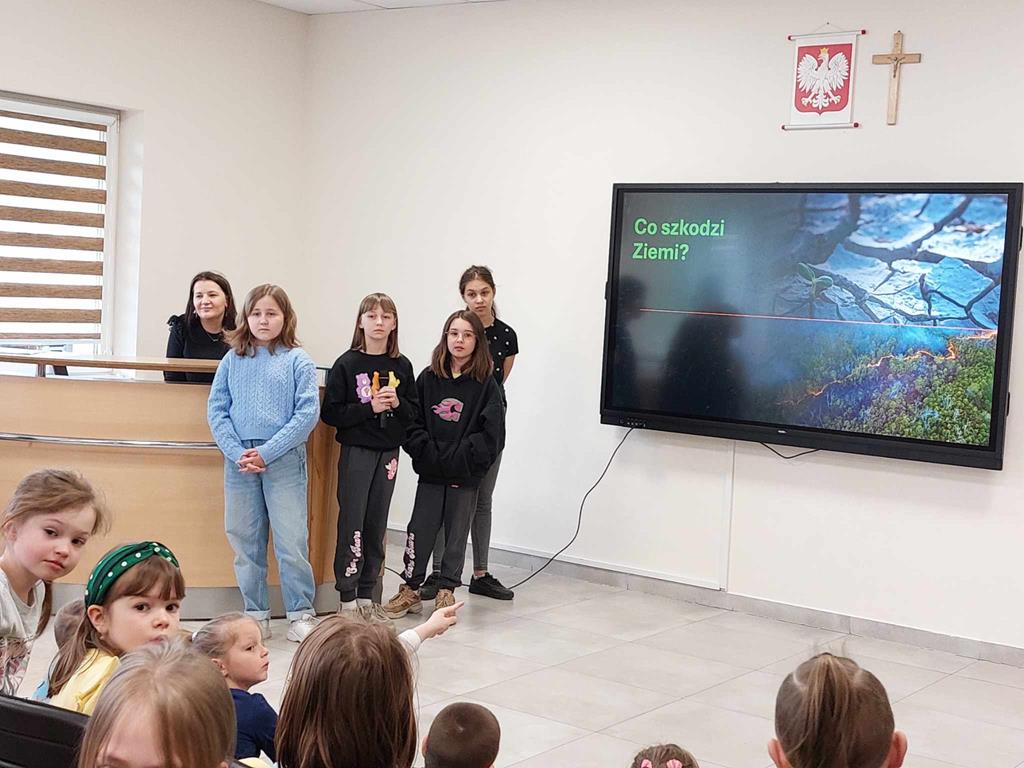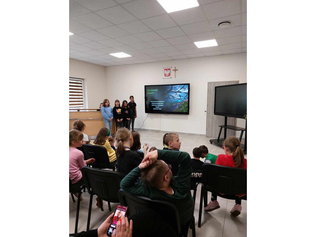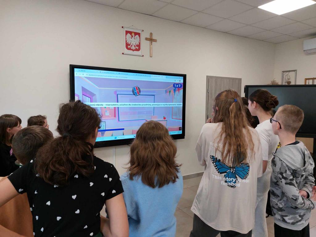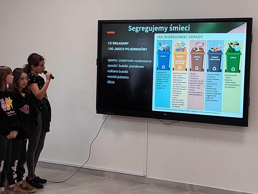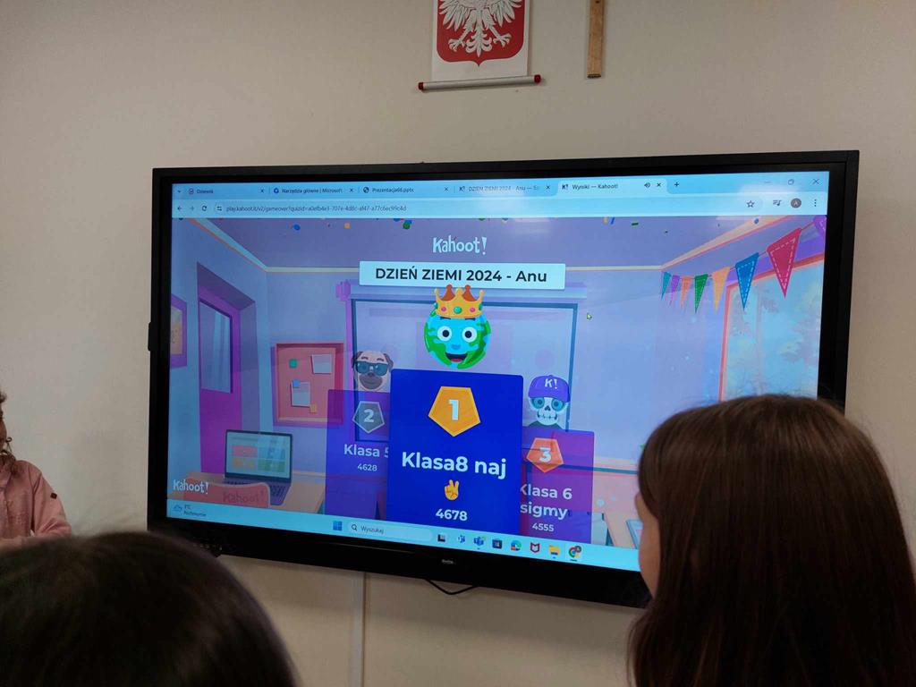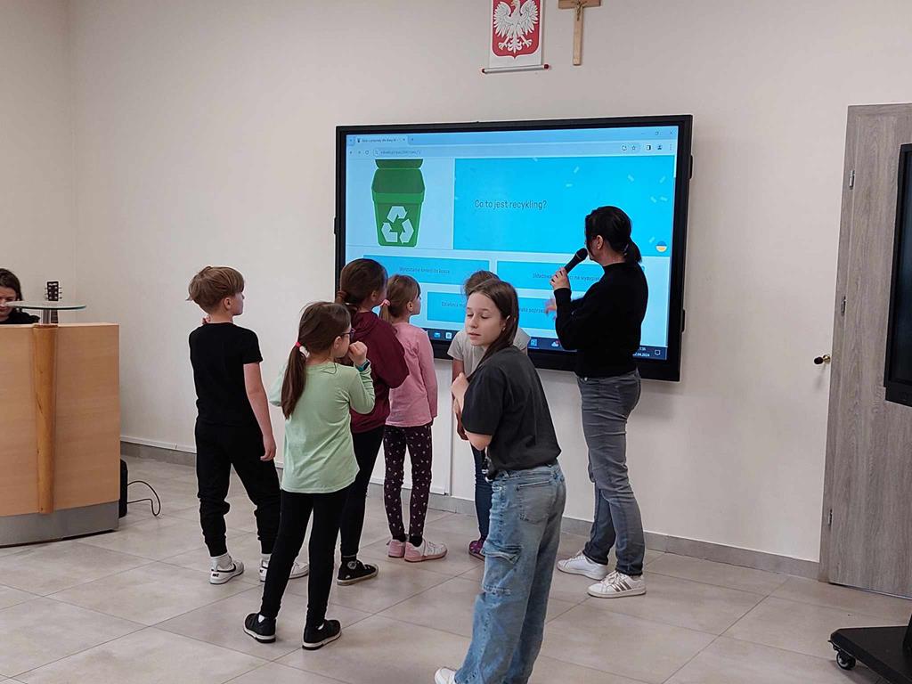 Kolejnym punktem tego wydarzenia był udział najmłodszych klas 1-3 w interaktywnym quizie na temat recyklingu i segregacji odpadów. Starsi natomiast uczniowie mogli sprawdzić swoją wiedzę w quizie ekologicznym na platformie Kahoot.