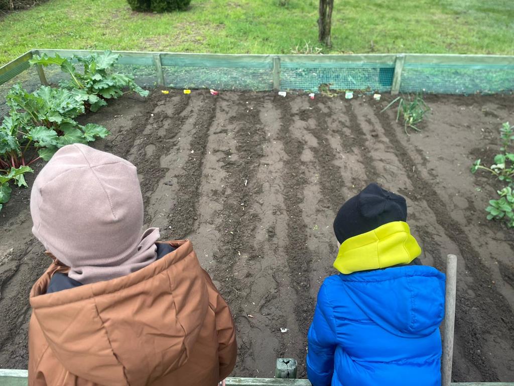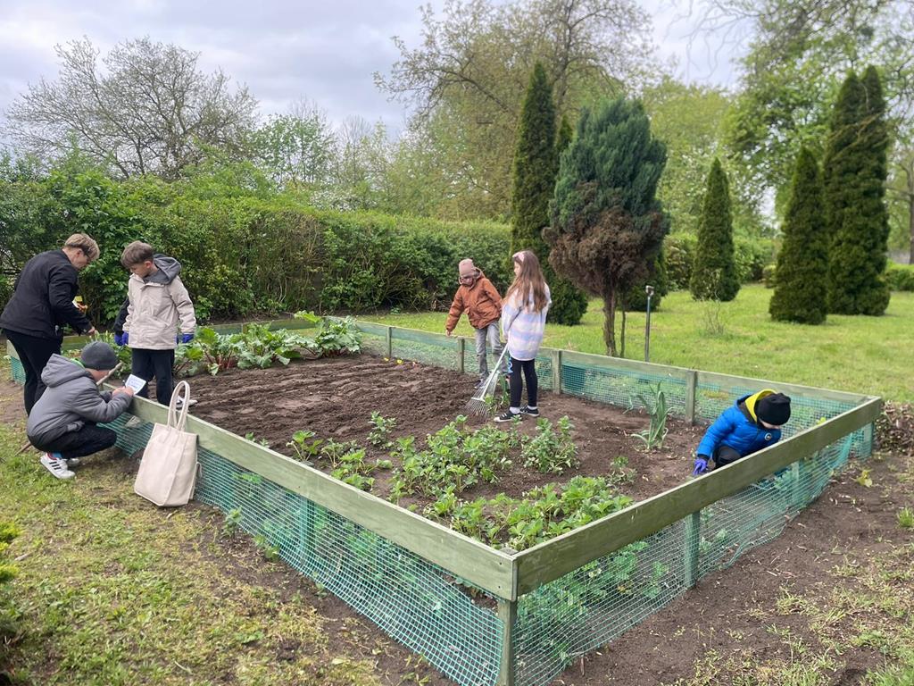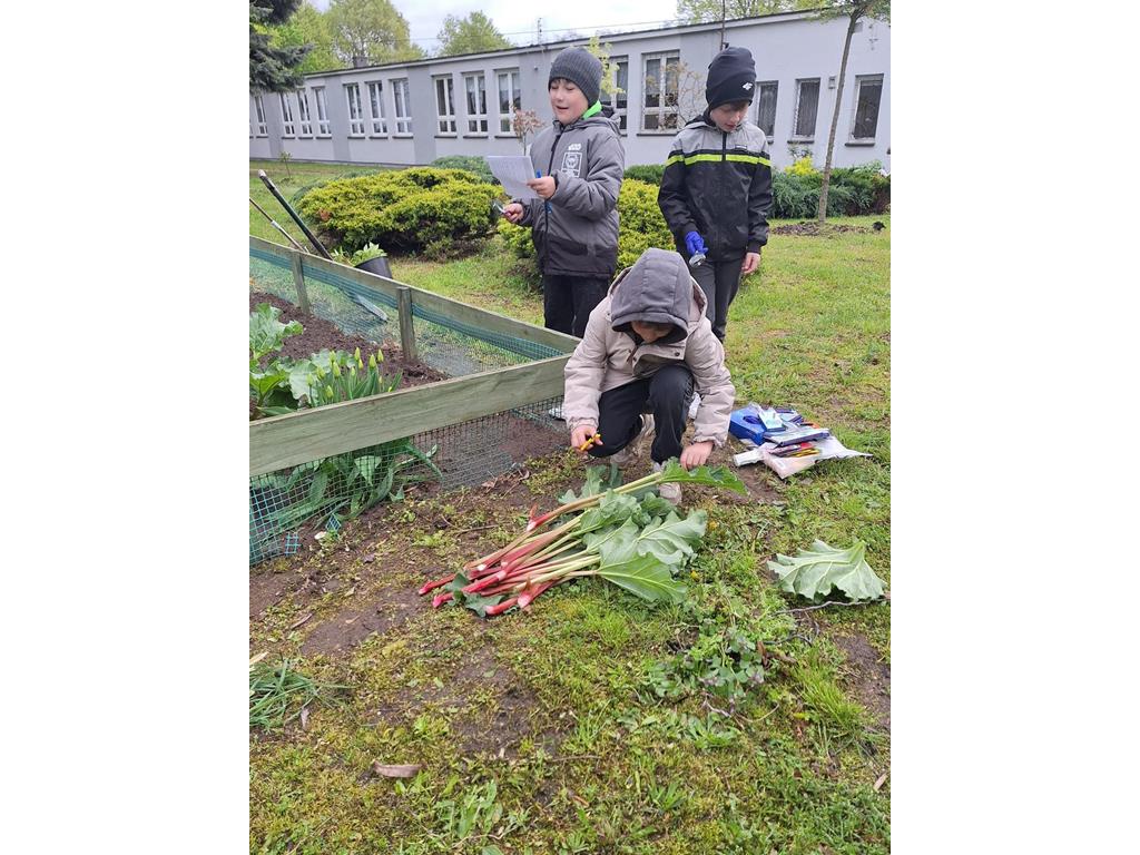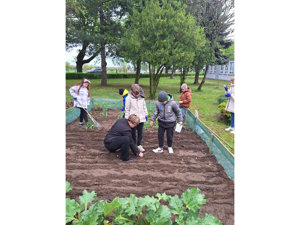 Na zajęciach przyrodniczych uczniowie klasy II powtórzyli zasady uprawy warzyw. Po zajęciach dzieci podwinęły rękawy i z pomocą rodziców i wychowawcy wzięły się do roboty. Mali ogrodnicy szybko uporządkowali ogródek i przygotowali glebę do siewu. W wyznaczonych grządkach zasiali marchew, pietruszkę, rzodkiewkę, szczypiorek, sałatę i koper. Wysadzili cebulę. Z ogrodu zerwali rabarbar by skosztować witamin.