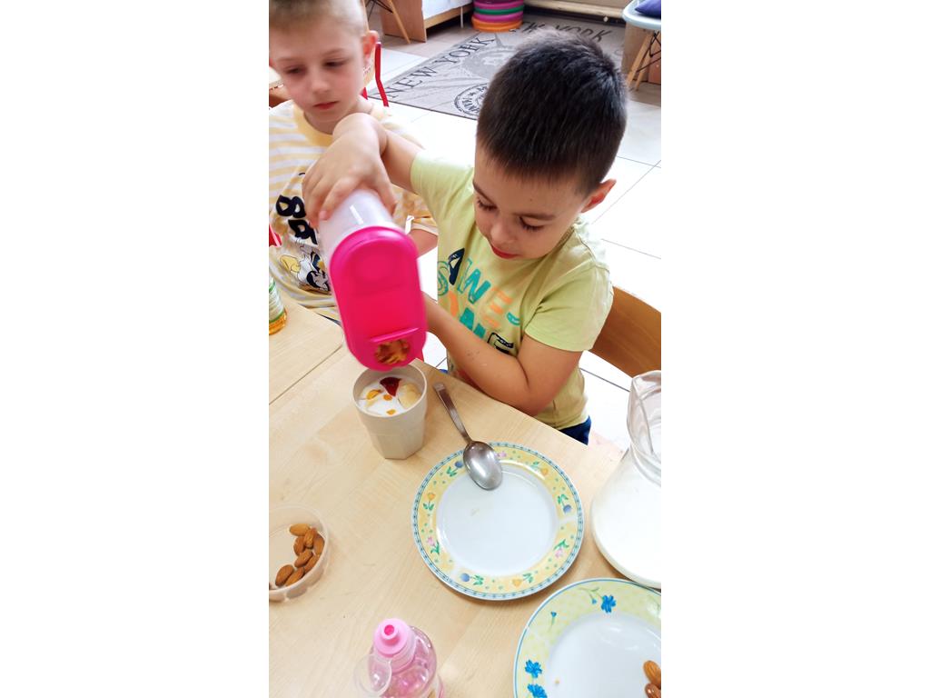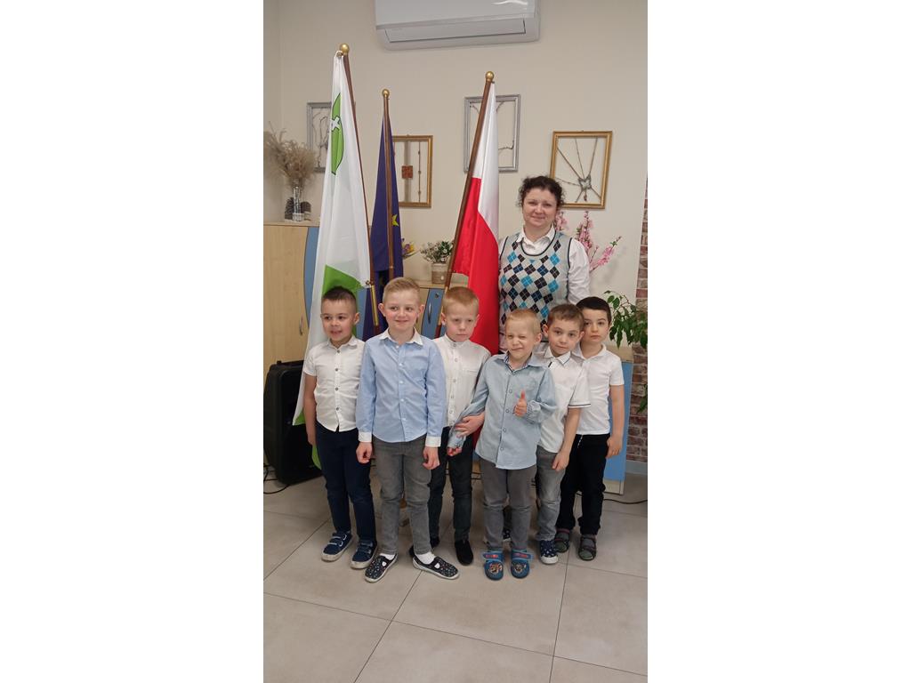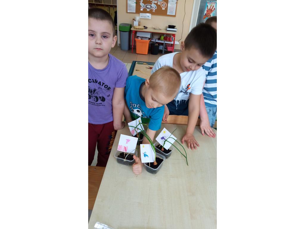W kwietniu w oddziale przedszkolnym dzieci pogłębiały wiedzę dotyczącą wiejskich zwierząt, pracy rolnika oraz Polski. Ponadto doskonaliły różne kompetencje,m.in.związane z wiązaniem sznurowadeł,obserwacją i wnioskowaniem jakie warunki potrzebują rośliny do wzrostu,kontynuowały zdrowe nawyki żywieniowe,uczestniczyły w Dniu Poezji oraz Dniu Książki i Praw Autorskich będąc artystami w przedstawieniu o Królewnie Śnieżce a także uroczystym apelu z okazji Świąt Majowych.Przedstawiciele grupy - Antoni,Gracjan oraz Jakub brali udział w Cieninie Kościelnym w I Przeglądzie Piosenki Przedszkolnej.