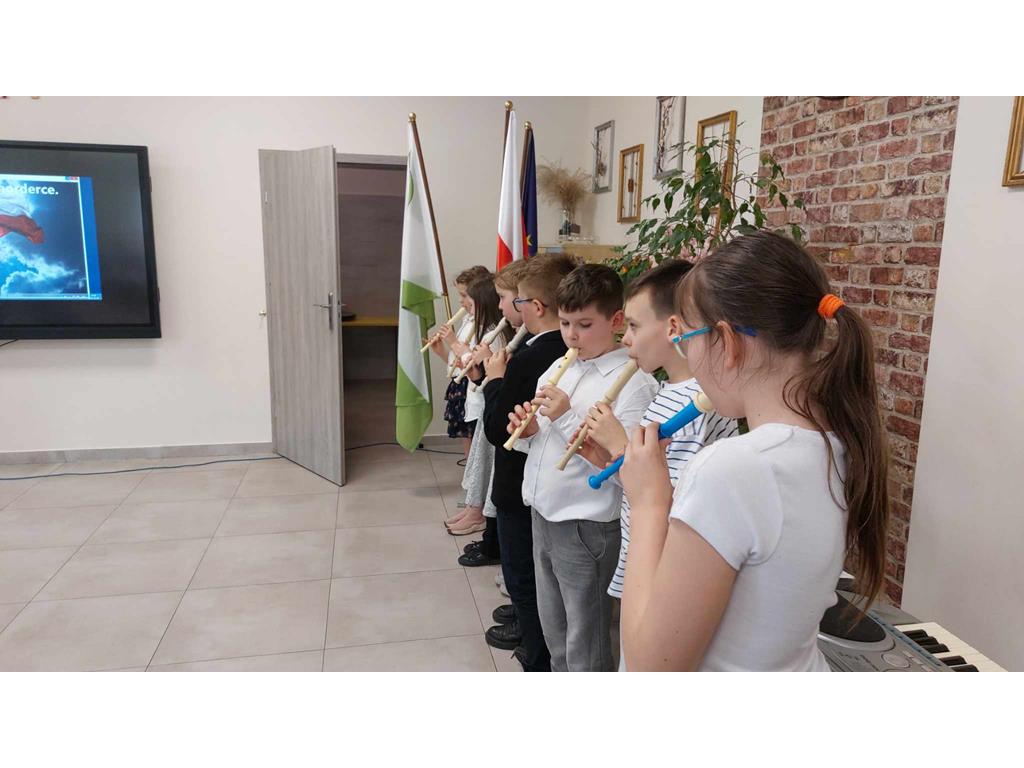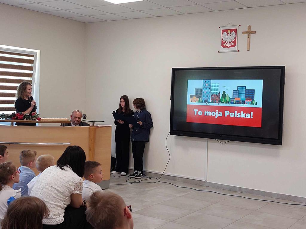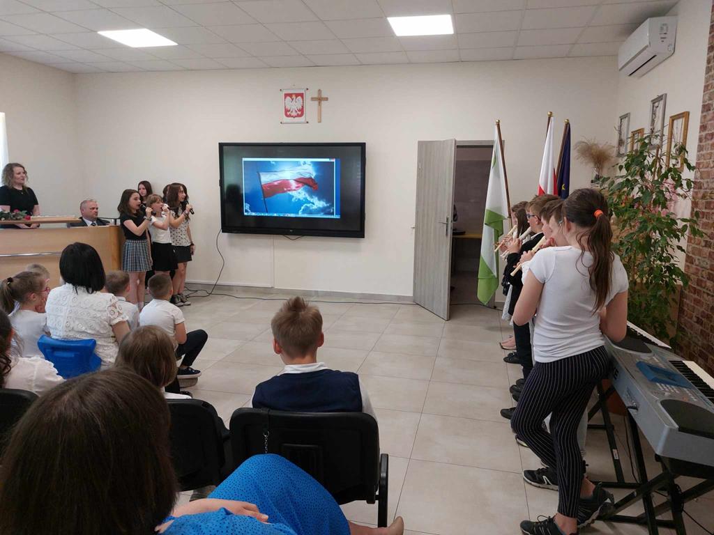 30 kwietnia w naszej szkole odbył się uroczysty apel z okazji ŚWIĄT MAJOWYCH. Uczniowie klasy piątej z muzycznym wsparciem czwarto i trzecioklasistów przygotowali krótkie przedstawienie, w którym upamiętnili cele i wartości obchodzonych w Polsce: