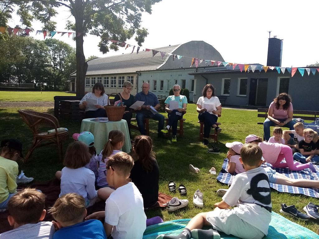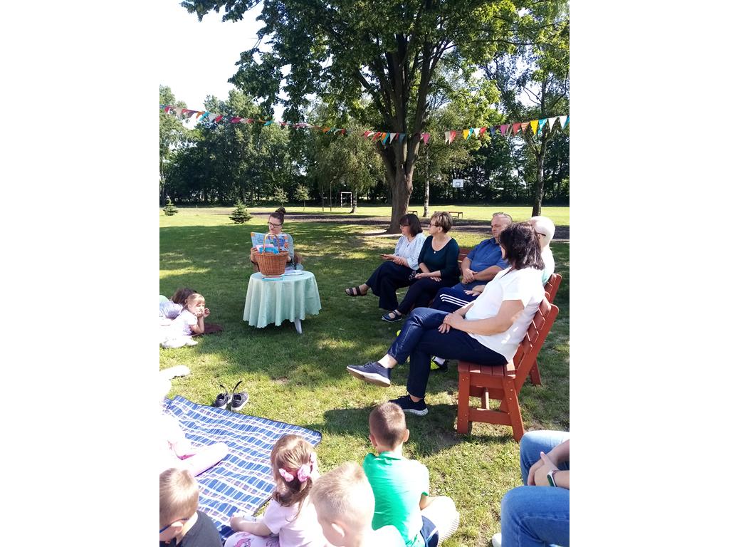 Podczas piknikowej uczty dyrektor szkoły Pani A. Kopczyńska oraz nauczyciele: Pani Bożena Koniecka, Pani Kamila Woźniak, Pan Jerzy Szymczak, Pan Andrzej Rydzewski oraz bibliotekarz Pani Wiesława Frydrychowicz czytali Tuwimowską „Lokomotywę” i „Ptasie radio” oraz opowiastkę z morałem „Czarnoksiężnik z krainy OZ”, z której dzieci dowiedziały się, że odwaga i wytrwałe dążenie do celu pomagają realizować marzenia.