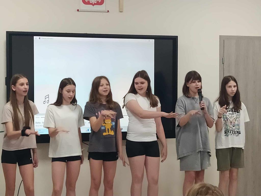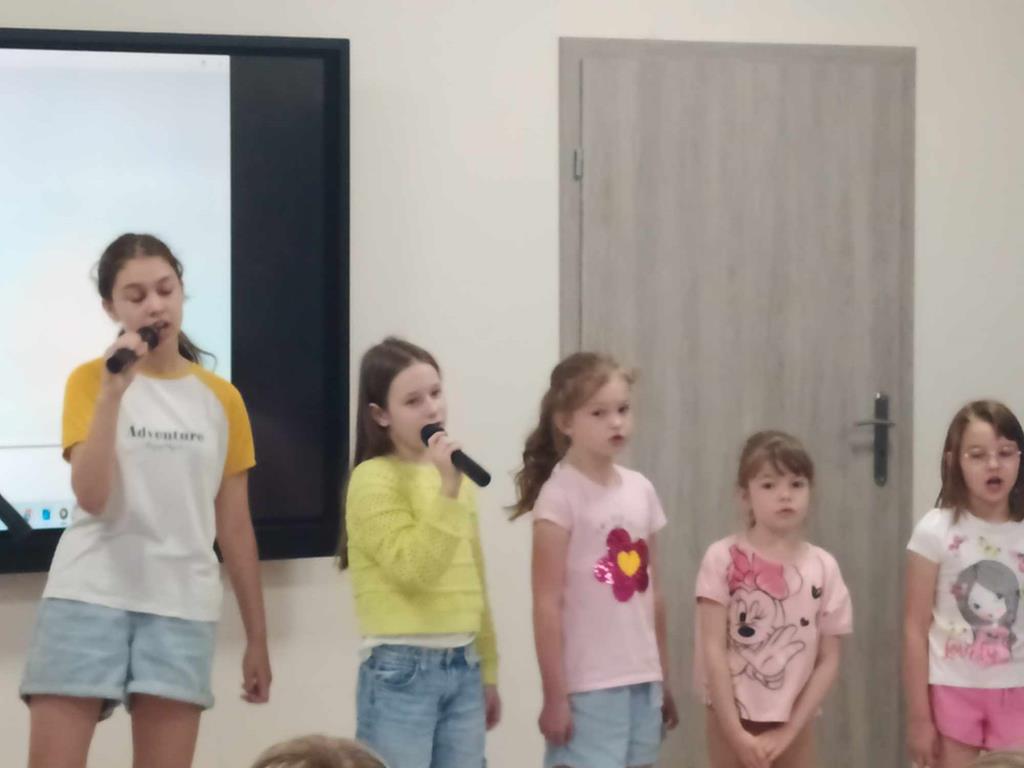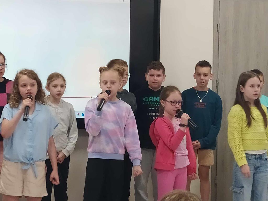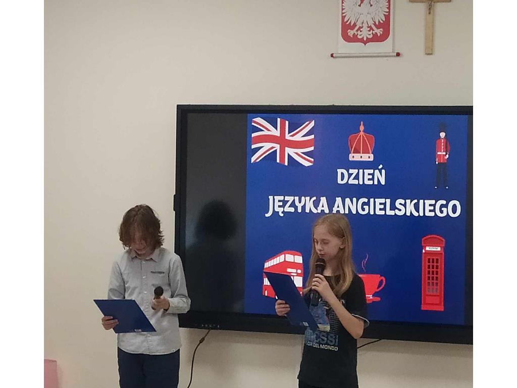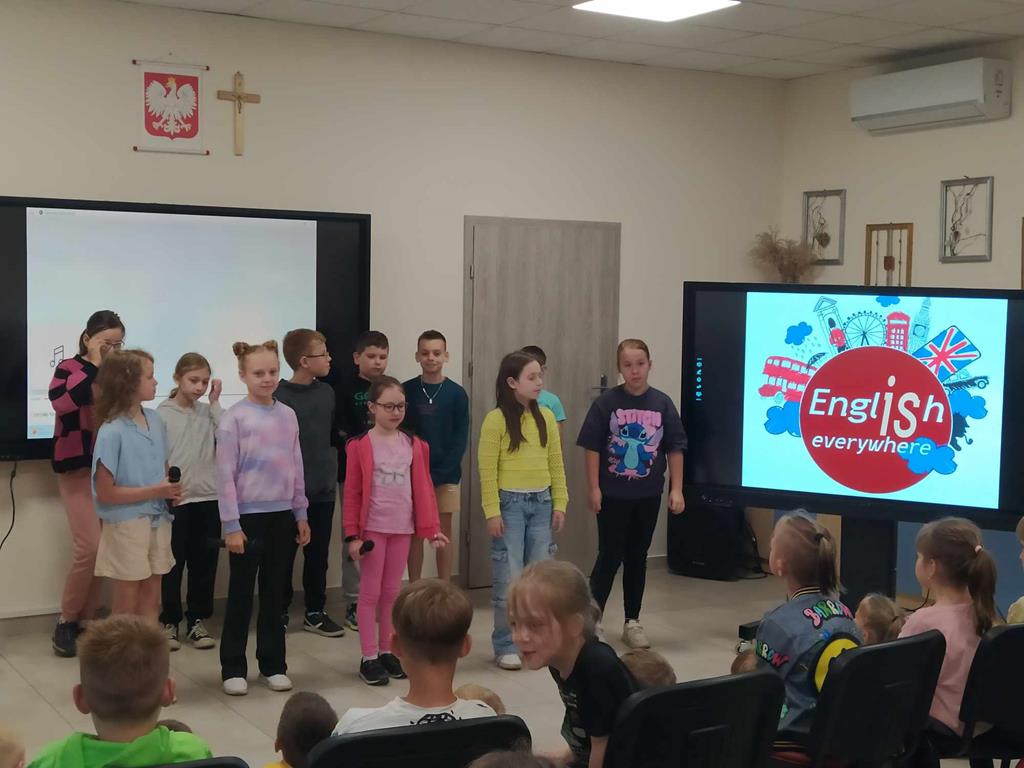 W dniu 6.06.2024r. w naszej szkole obchodziliśmy Dzień Języka Angielskiego. Z tejże okazji odbył się ,,mini koncert” dla całej społeczności szkolnej, podczas którego zarówno dzieci z oddziału przedszkolnego, jak i uczniowie klas 1-8 mogli zaprezentować swoje uzdolnienia, nie tylko językowe, ale również wokalne czy taneczne. Do występów uczniowie zostali przygotowani przez panią Joannę Wiśną oraz panią Annę Filipiec.