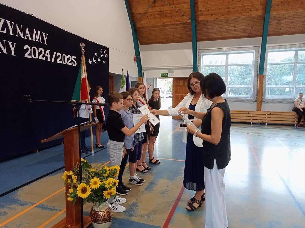 Pani Dyrektor pogratulowała nagrodzonym i życzyła wszystkim uczniom i nauczycielom wielu sukcesów w nowym roku szkolnym, po czym uczniowie i ich rodzice udali się do klas na spotkanie z wychowawcami.