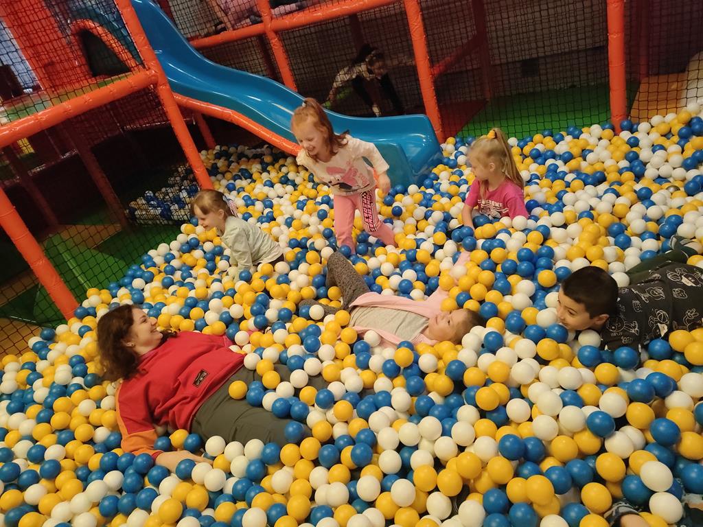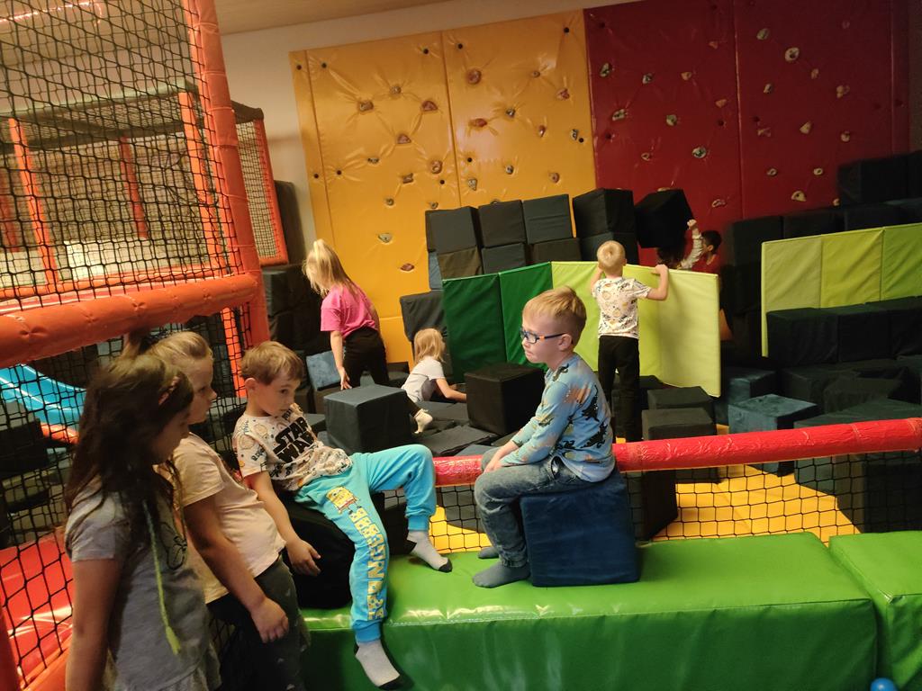 Wycieczka oddziału przedszkolnego z klasą pierwsza na salę zabaw Quźnia Talentu w Słupcy z okazji Dnia Chłopca.