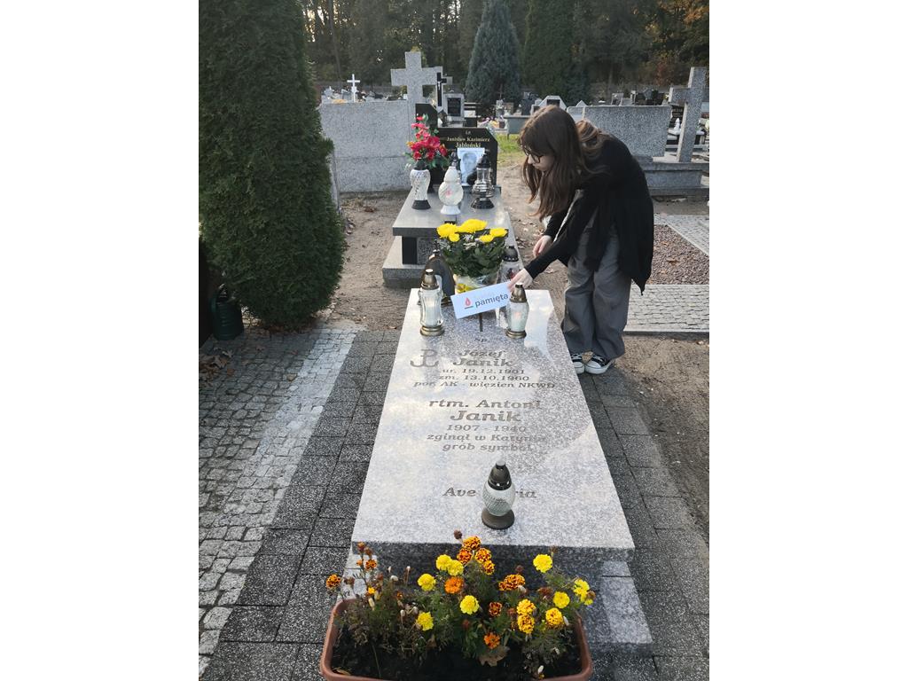 Naszym obowiązkiem jest pamiętać o tych, którzy odeszli. W związku z tym uczniowie naszej szkoły wraz z rodzicami odwiedzili groby zmarłych na cmentarzu w Koszutach oraz Słupcy wraz z opiekunami Dorotą Nowakowską oraz Kornelią Piasecką. Uporządkowali grób patrona szkoły – Józefa Wiktora Janika, zapalili znicze i złożyli kwiaty. Ponadto pomodlili się i zapalili znicze na grobach: Tomasza Matelskiego – weterana z 1863 r., byłych nauczycieli i pracowników oświaty. Ta obecność w tym miejscu jest dowodem pamięci i uznania dla tych, którzy odeszli.