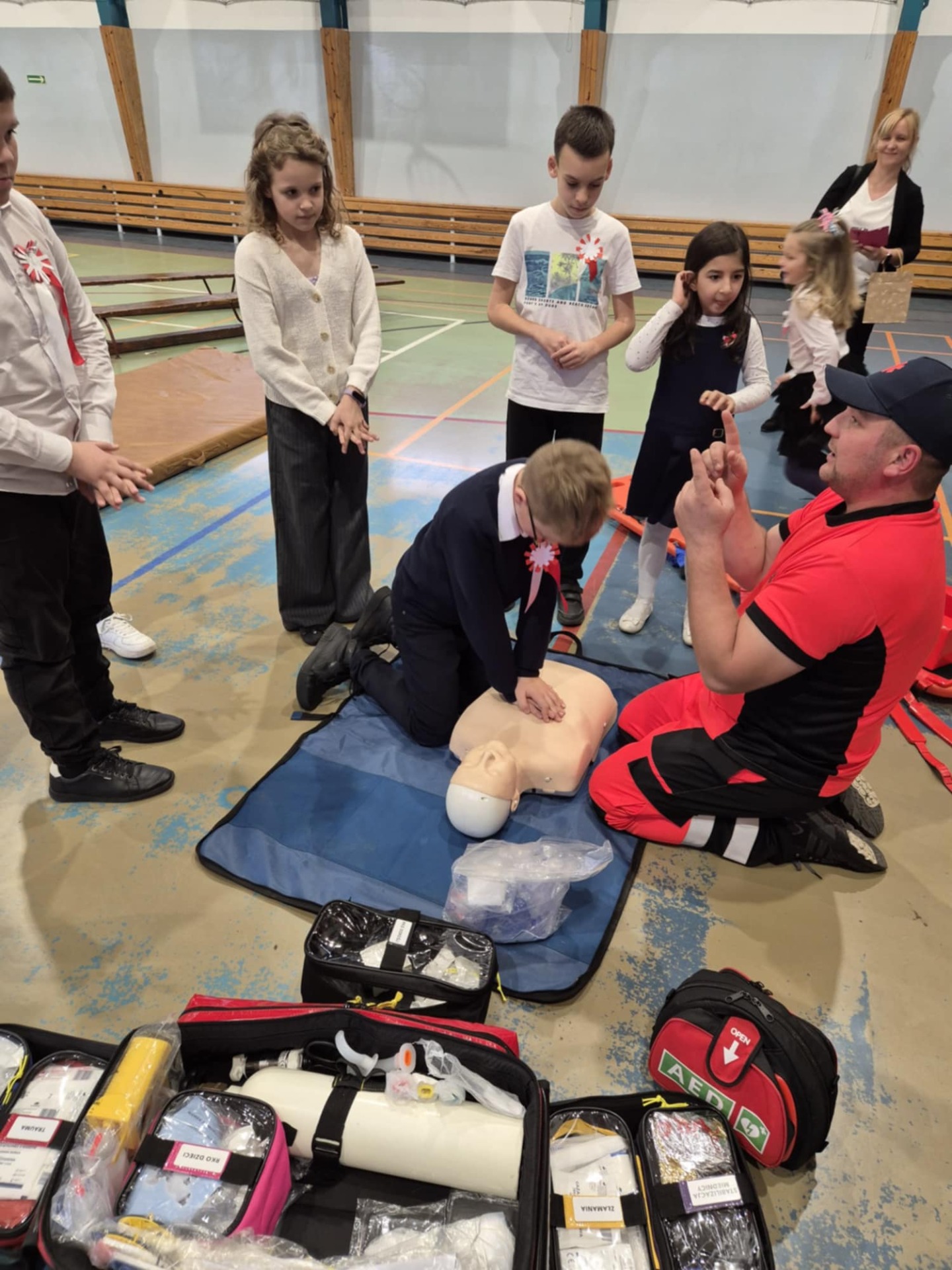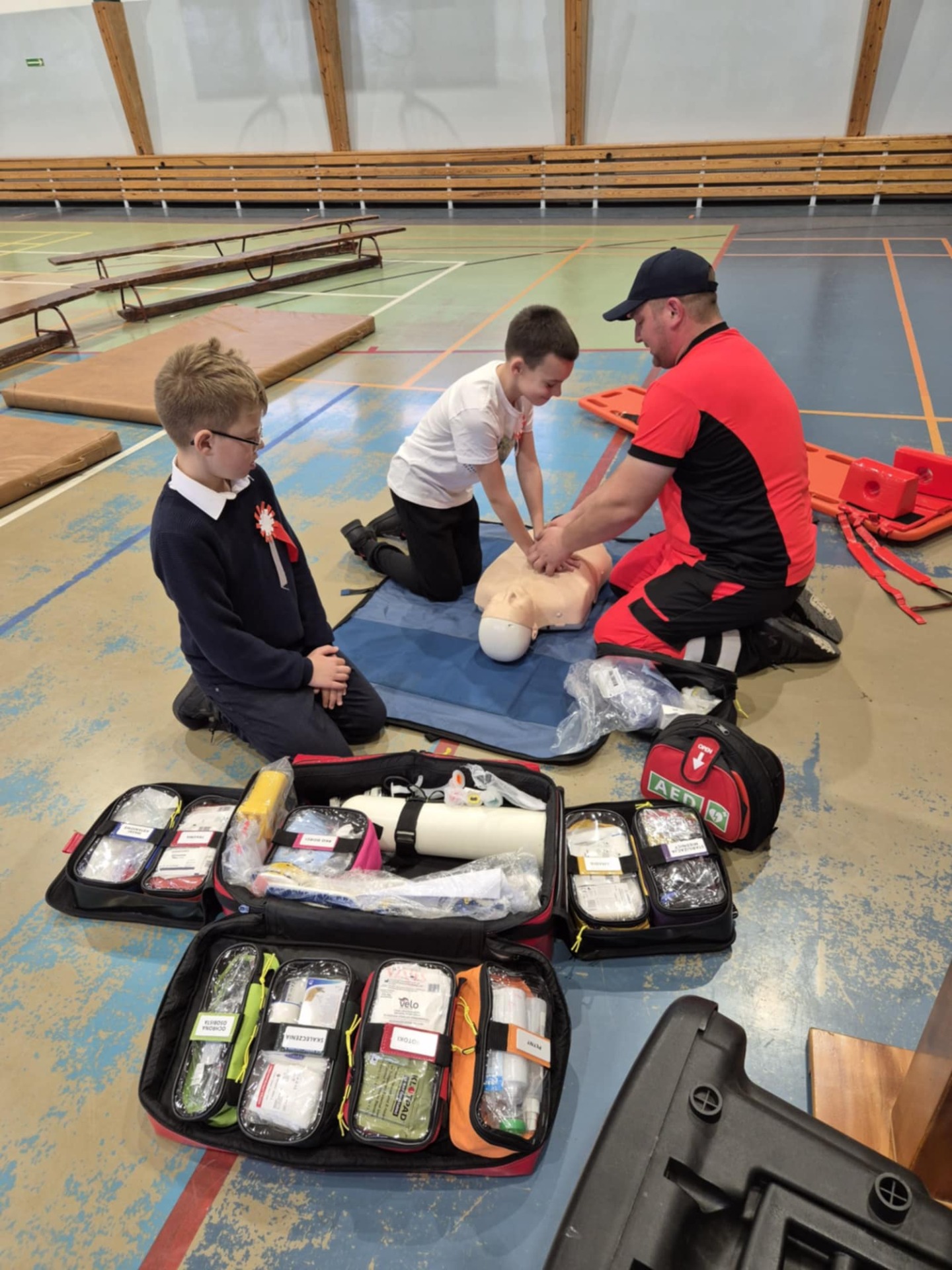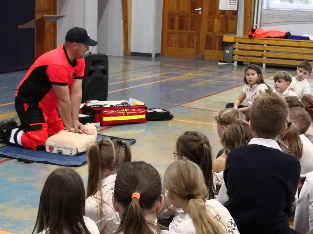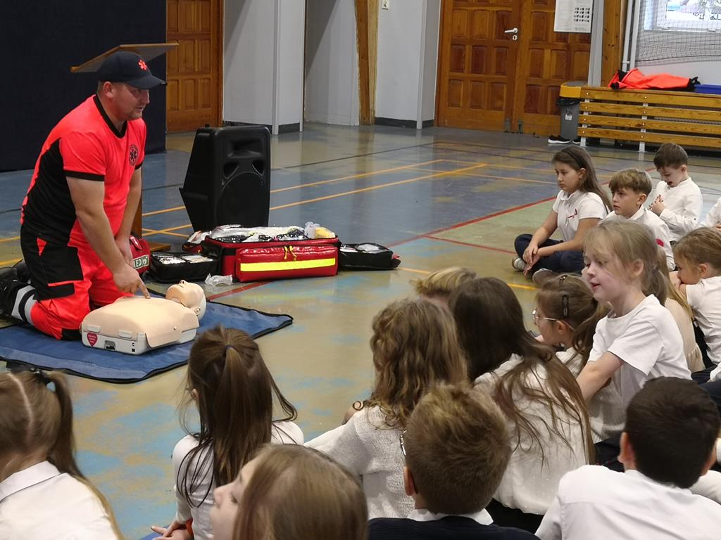 W dniu 9.11.2024 r. odbyły się warsztaty udzielania pierwszej pomocy dla uczniów naszej szkoły. Poprzez zabawę i praktyczne ćwiczenia dzieci dowiedziały się jak w prawidłowy sposób reagować w sytuacjach zagrażających zdrowiu i życiu człowieka, ćwiczyły resuscytację na fantomie, przypomniały sobie numery alarmowe, poznały sprzęt i wyposażenie torby ratowniczej, dowiedziały się co to jest AED oraz zobaczyły na czym polega praca ratownika medycznego.