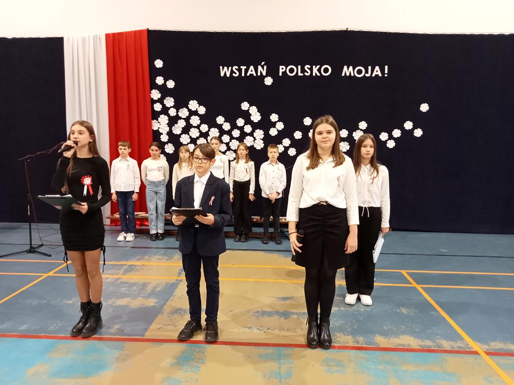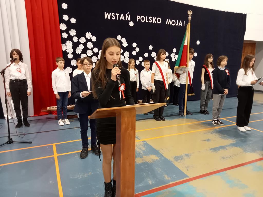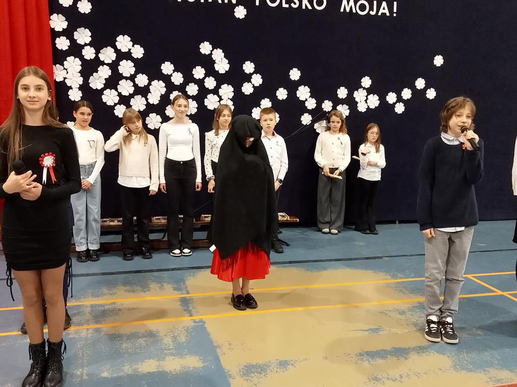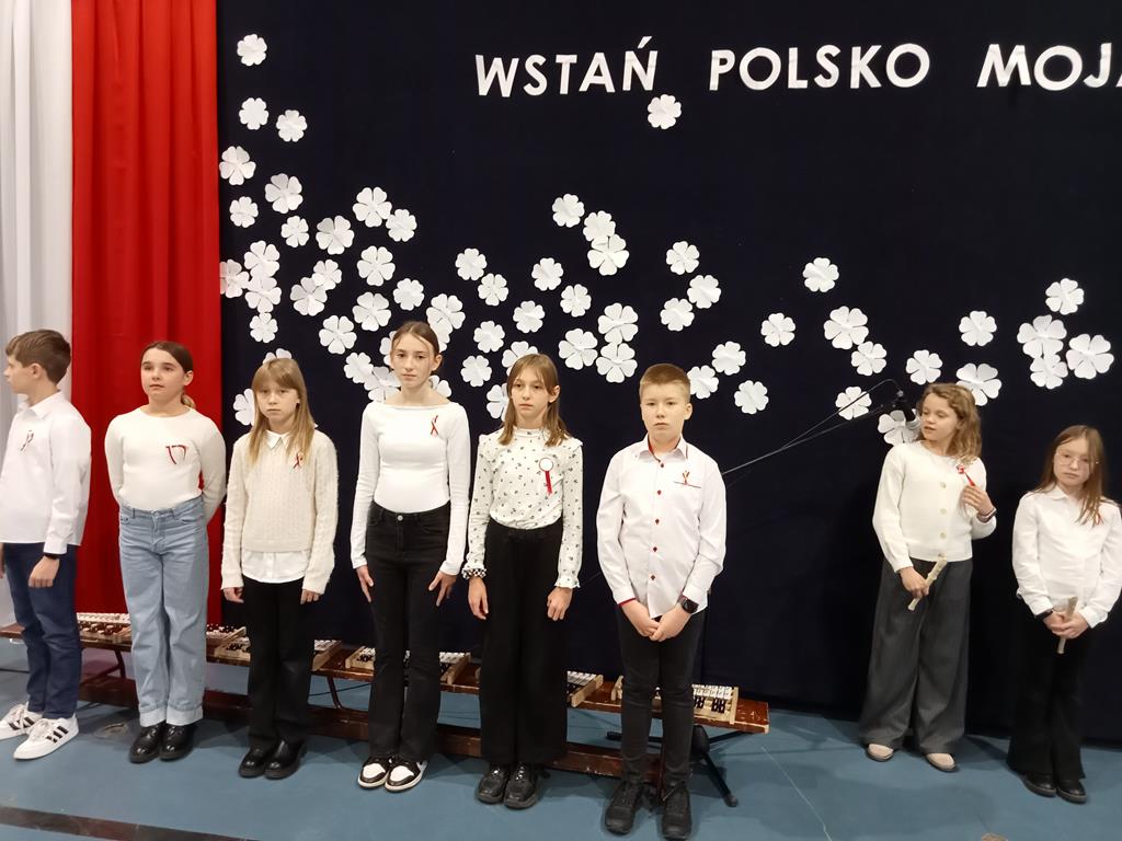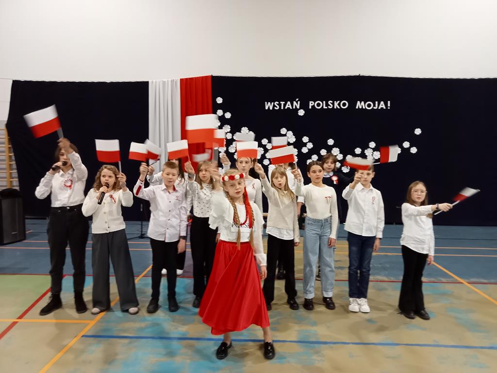 12 listopada 2024 r. w naszej szkole uczciliśmy Narodowe Święto Niepodległości. W kompozycji muzyczno-słownej wystąpili uczniowie klasy 4, 5, 6 i 7 oraz nauczyciele – p. Joanna Wiśna i p. Andrzej Rydzewski. Uczniowie recytowali piękne wiersze patriotyczne autorstwa m.in. Wisławy Szymborskiej, Marii Sulimy i Józefa Mączki oraz zaśpiewali tradycyjne oraz współczesne pieśni patriotyczne. W czasie uroczystej akademii wystąpiły również dzieci z oddziału przedszkolnego, które wykonały utwór „Serce dla Polski” oraz uczniowie klasy 2, którzy zaśpiewali utwór „Serce w plecaku”. Na zakończenie obchodów 106. rocznicy odzyskania przez Polskę niepodległości szkolny zespół taneczny FLASH przedstawił społeczności szkolnej „Poloneza” we współczesnej odsłonie.
