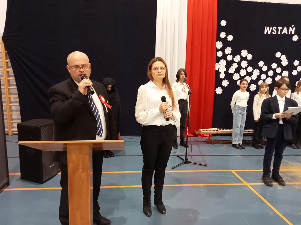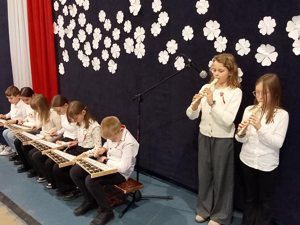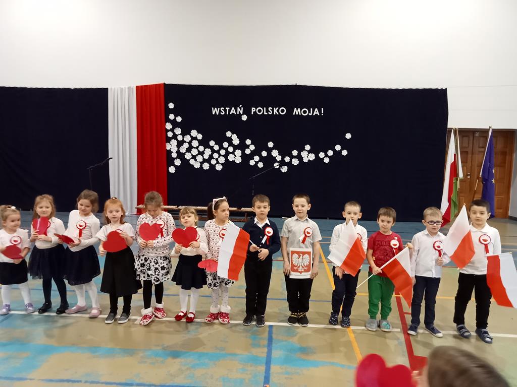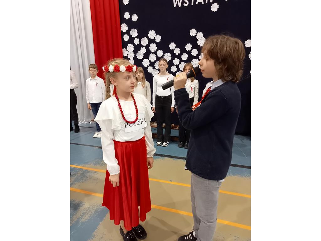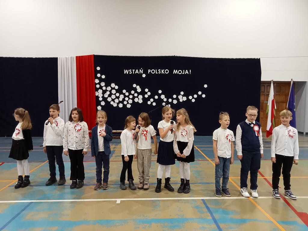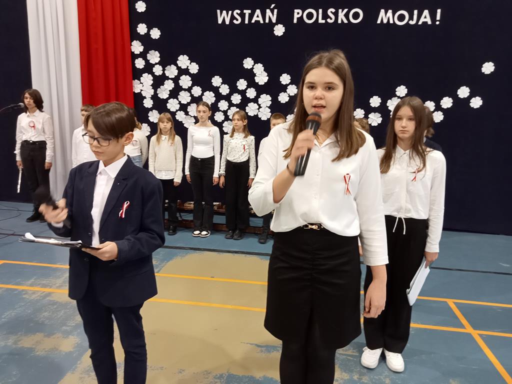 12 listopada 2024 r. w naszej szkole uczciliśmy Narodowe Święto Niepodległości. W kompozycji muzyczno-słownej wystąpili uczniowie klasy 4, 5, 6 i 7 oraz nauczyciele – p. Joanna Wiśna i p. Andrzej Rydzewski. Uczniowie recytowali piękne wiersze patriotyczne autorstwa m.in. Wisławy Szymborskiej, Marii Sulimy i Józefa Mączki oraz zaśpiewali tradycyjne oraz współczesne pieśni patriotyczne. W czasie uroczystej akademii wystąpiły również dzieci z oddziału przedszkolnego, które wykonały utwór „Serce dla Polski” oraz uczniowie klasy 2, którzy zaśpiewali utwór „Serce w plecaku”. Na zakończenie obchodów 106. rocznicy odzyskania przez Polskę niepodległości szkolny zespół taneczny FLASH przedstawił społeczności szkolnej „Poloneza” we współczesnej odsłonie.