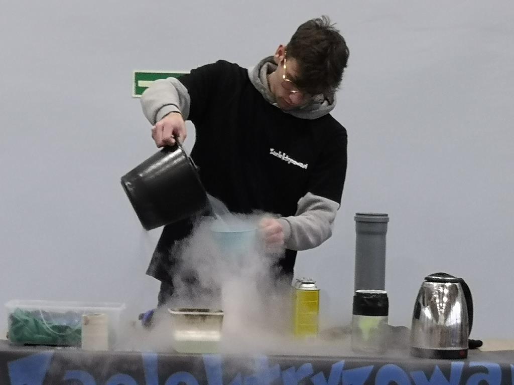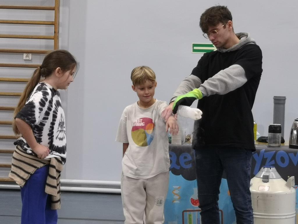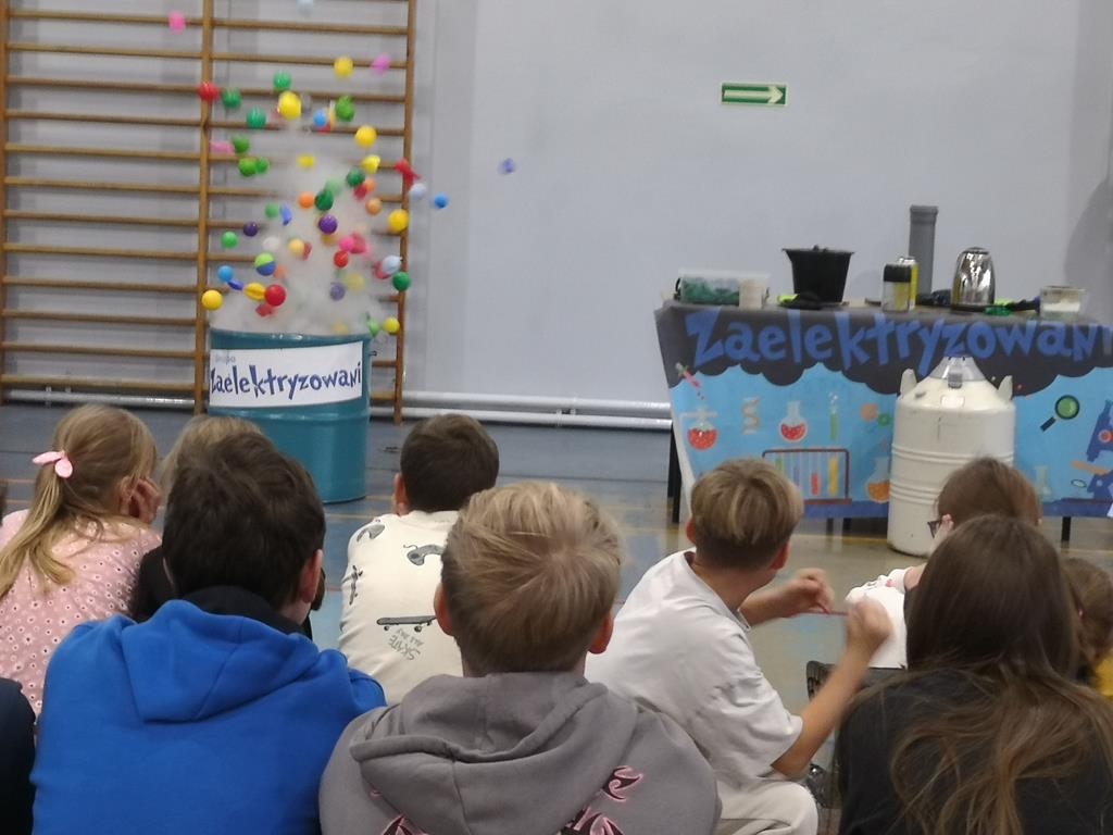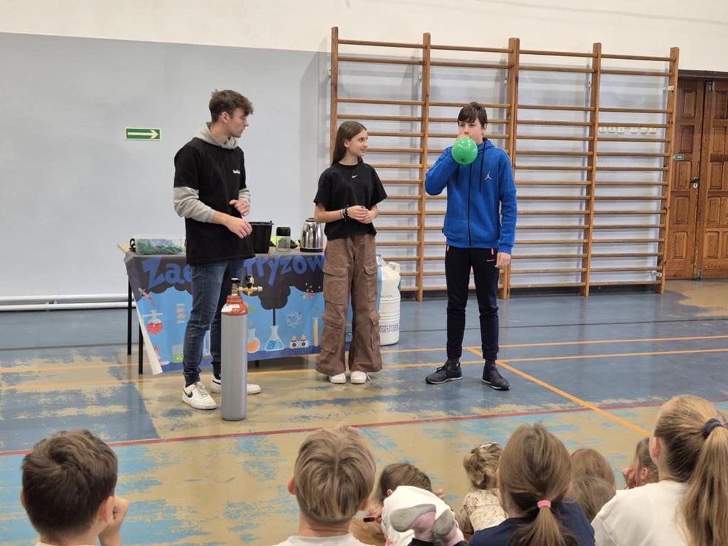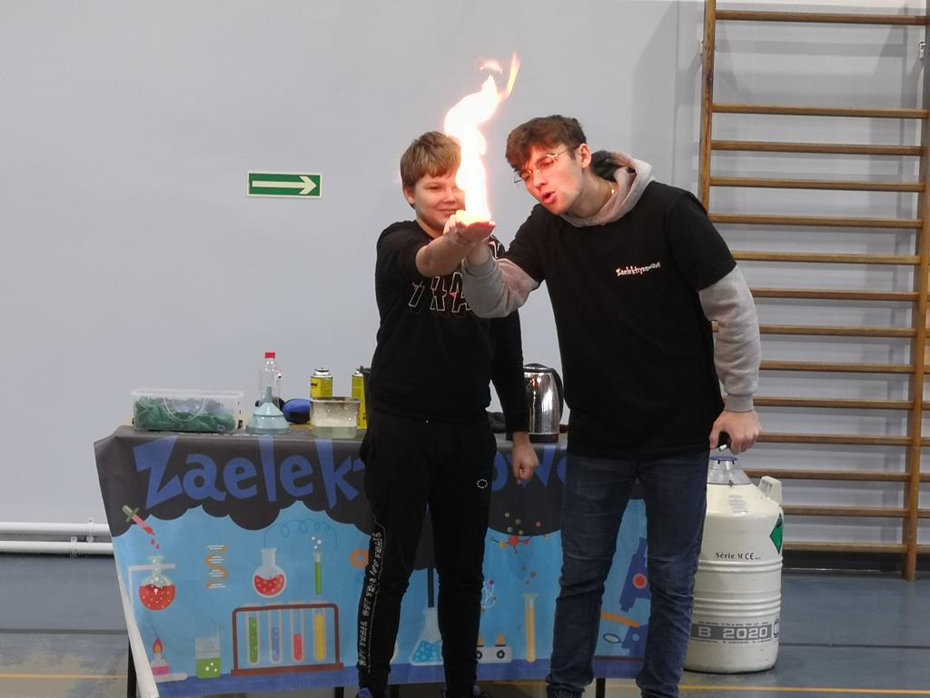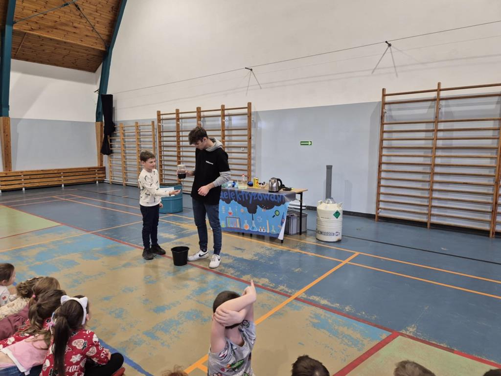 W naszej szkole 15 listopada odbyła się niecodzienna lekcja pt. ”Zasady fizyczne czy kwasy chemiczne” prowadzona przez grupę Zaelektryzowani. Celem pokazu było przybliżenie tajników fizyki i chemii w bardzo prosty i atrakcyjny sposób. Prowadzący zaprezentował widowiskowe eksperymenty i doświadczenia. Chemia i fizyka to również wiedza praktyczna, która może przydać się nam w życiu codziennym. W programie znalazły się zabawy z gazami (zabawy z helem i ciekłym azotem, wybuchowe spalanie wodoru). Zarówno młodsi jak i starsi uczniowie aktywnie uczestniczyli w doświadczeniach i pokazach. Dostarczyły one wiele śmiechu, ale również sporą porcję wiedzy. Uczniowie zobaczyli, że nauka może być wesoła, ciekawa i pasjonująca.