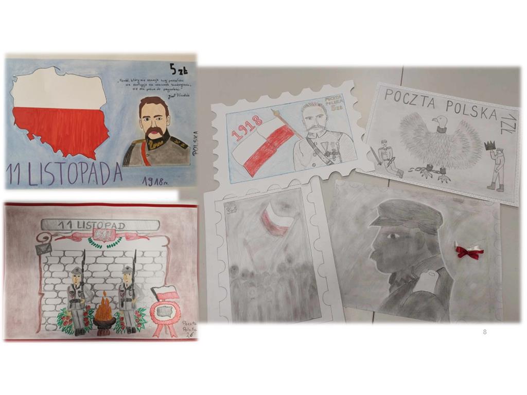 W ramach 106. Rocznicy Odzyskania Niepodległości przez Polskę uczniowie naszej szkoły wzięli udział w Gminnym Konkursie Plastycznym pt. „BOHATEROWIE NASZEJ WOLNOŚCI”, organizowanym przez Wójta Gminy Słupca Pana Bogdana Kukulskiego oraz Bibliotekę Publiczną Gminy Słupca w Cieninie Zabornym. Zadaniem uczestników konkursu było wykonanie projektu znaczka pocztowego w formacie A3. Przebiegał on w dwóch kategoriach wiekowych: uczniowie klas IV-VI oraz uczniowie klas VII-VIII. Łącznie do konkursu przystąpiło 48 uczniów z terenu gminy Słupca. Pośród nagrodzonych i wyróżnionych z naszej szkoły znalazło się aż 5 osób z ośmiu, które wzięły udział.