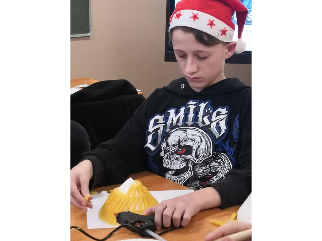 Podczas warsztatów uczniowie mieli okazję własnoręcznie tworzyć ozdoby świąteczne z makaronu oraz dowiedzieć się jak wygląda praca bibliotekarza.