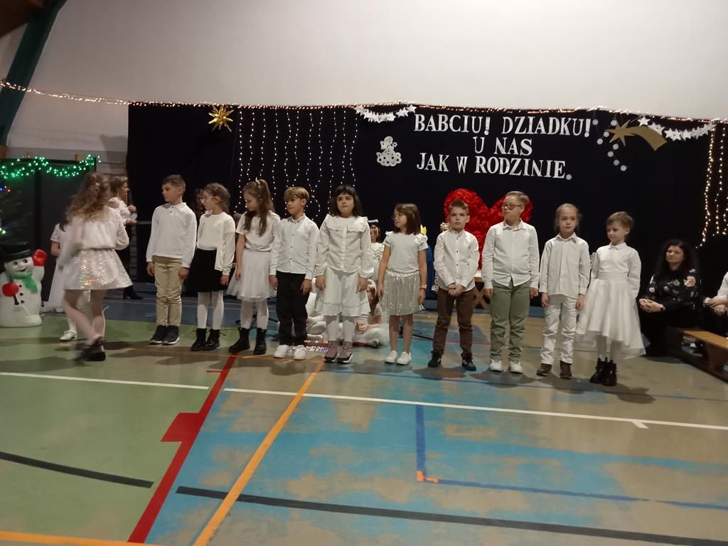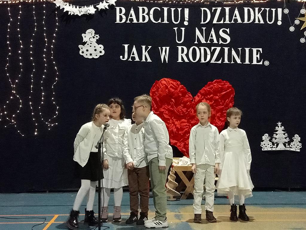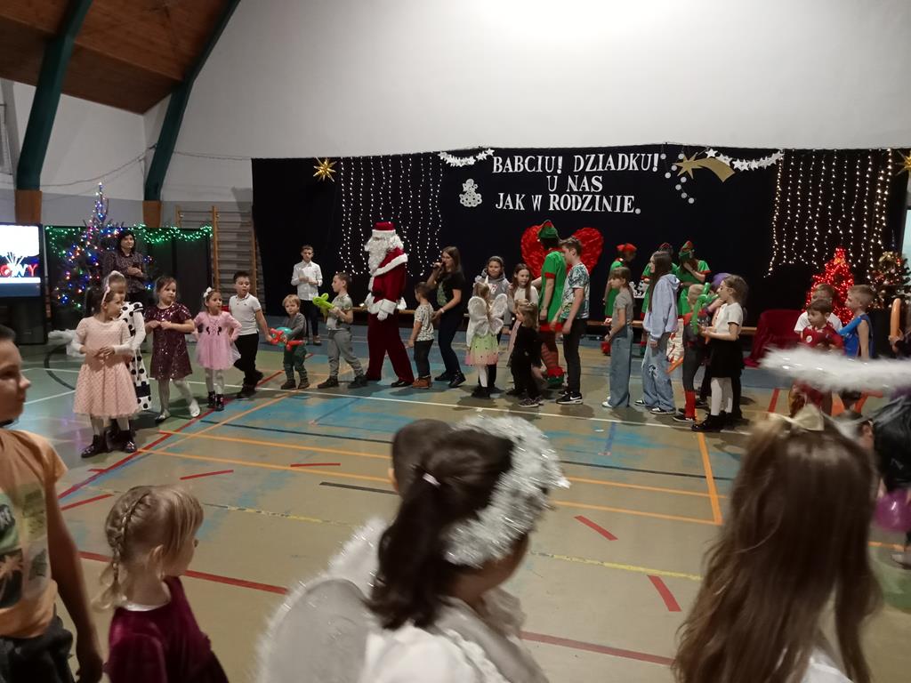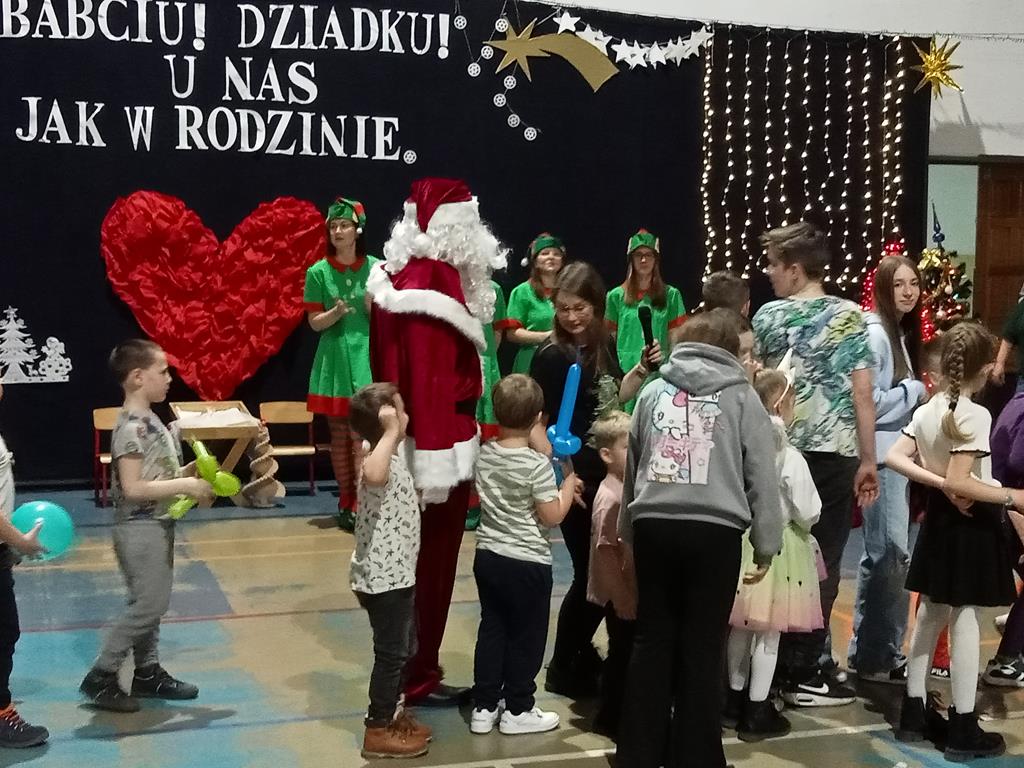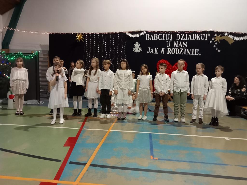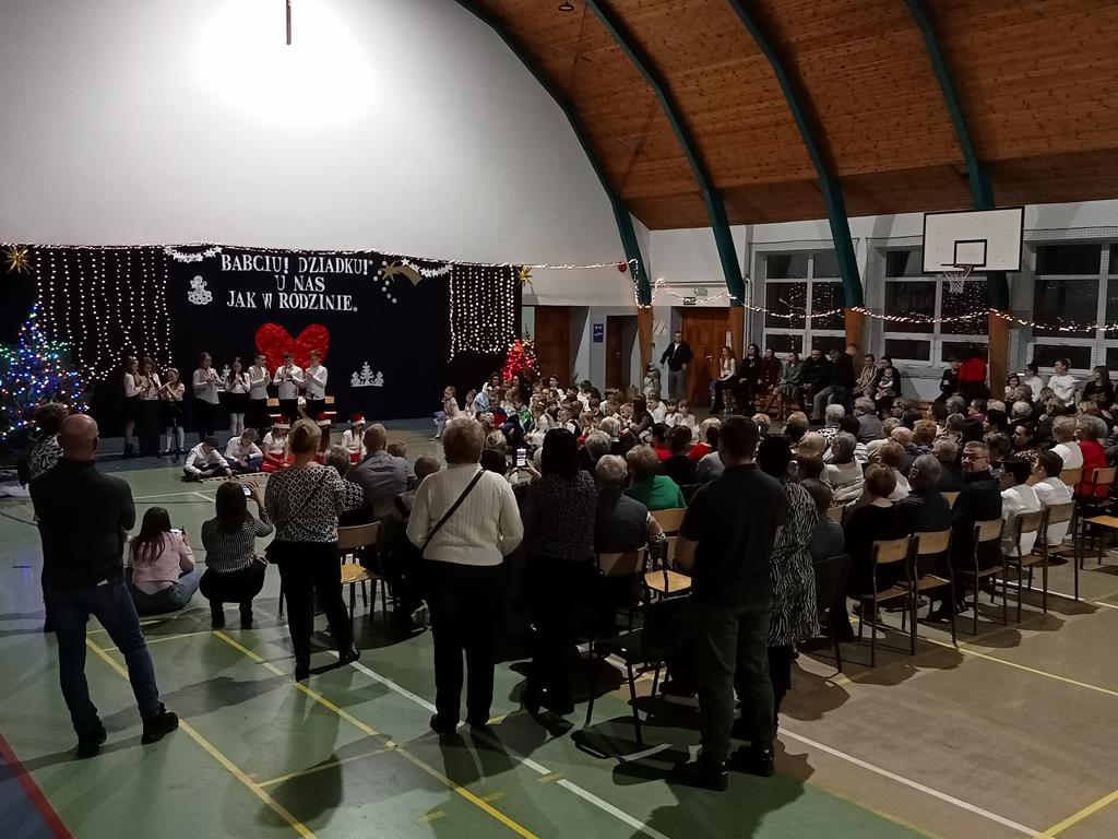 Święto Babci i Dziadka jest wspaniałą okazją do wspólnego spotkania i biesiadowania, zabawy oraz kolędowania w ten noworoczny czas. Dziadkowie to wielki skarb dla wnuków i rodziców. Dlatego właśnie w dniu 17 stycznia wnuczki i wnukowie zaśpiewali, zagrali, recytowali, tańczyli i żartowali dla swoich ukochanych dziadków i babć. Rodzice przygotowali słodki poczęstunek. Potem wszyscy się bawili na sali gimnastycznej do późnych godzin wieczornych. Kulminacyjnym punktem był Święty Mikołaj, który wręczył prezenty. Był to czas spędzony bardzo rodzinnie, wesoło i przyjemnie.