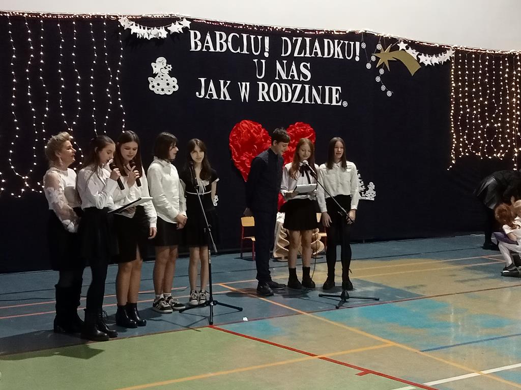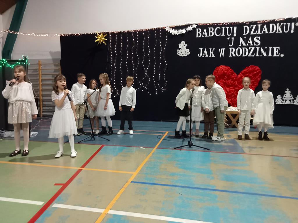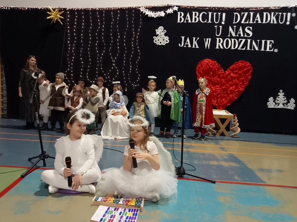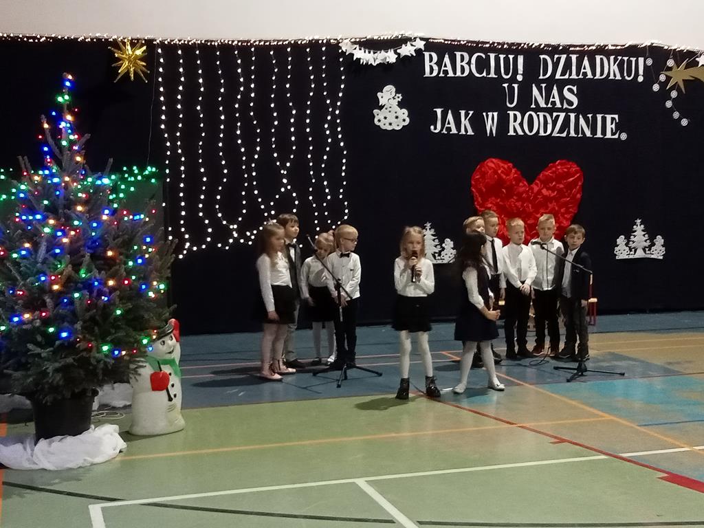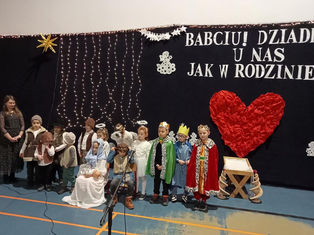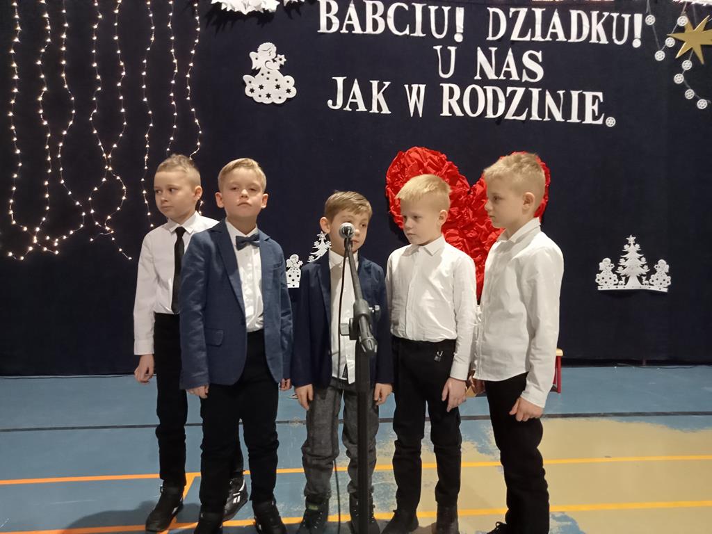 Święto Babci i Dziadka jest wspaniałą okazją do wspólnego spotkania i biesiadowania, zabawy oraz kolędowania w ten noworoczny czas. Dziadkowie to wielki skarb dla wnuków i rodziców. Dlatego właśnie w dniu 17 stycznia wnuczki i wnukowie zaśpiewali, zagrali, recytowali, tańczyli i żartowali dla swoich ukochanych dziadków i babć. Rodzice przygotowali słodki poczęstunek. Potem wszyscy się bawili na sali gimnastycznej do późnych godzin wieczornych. Kulminacyjnym punktem był Święty Mikołaj, który wręczył prezenty. Był to czas spędzony bardzo rodzinnie, wesoło i przyjemnie.