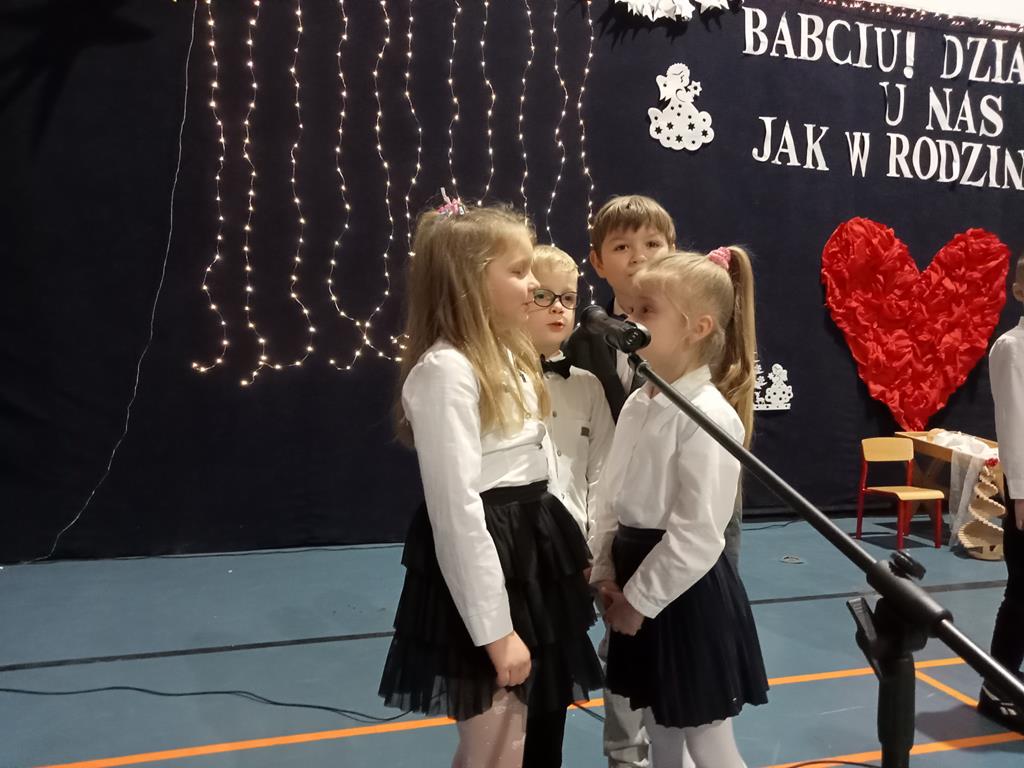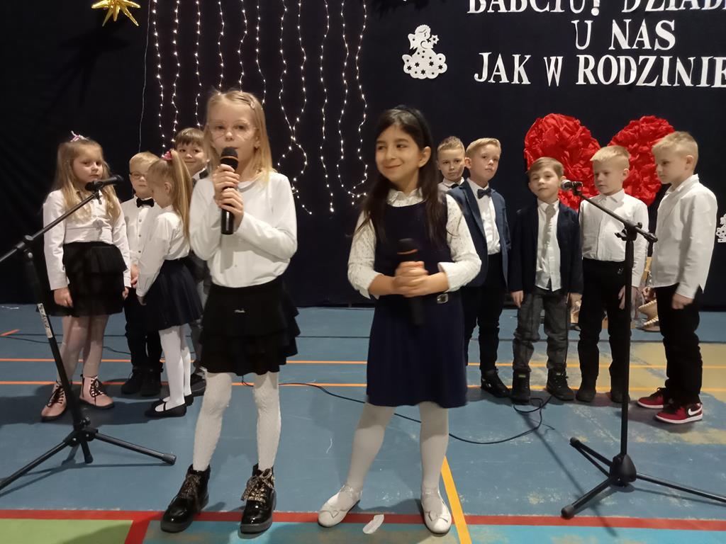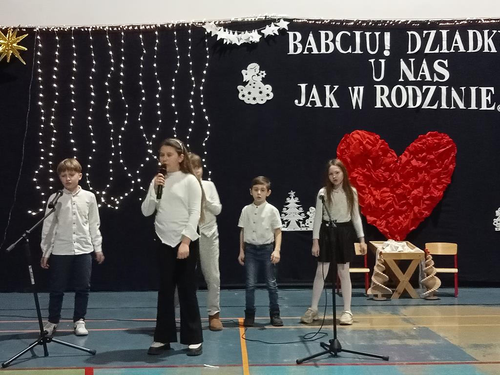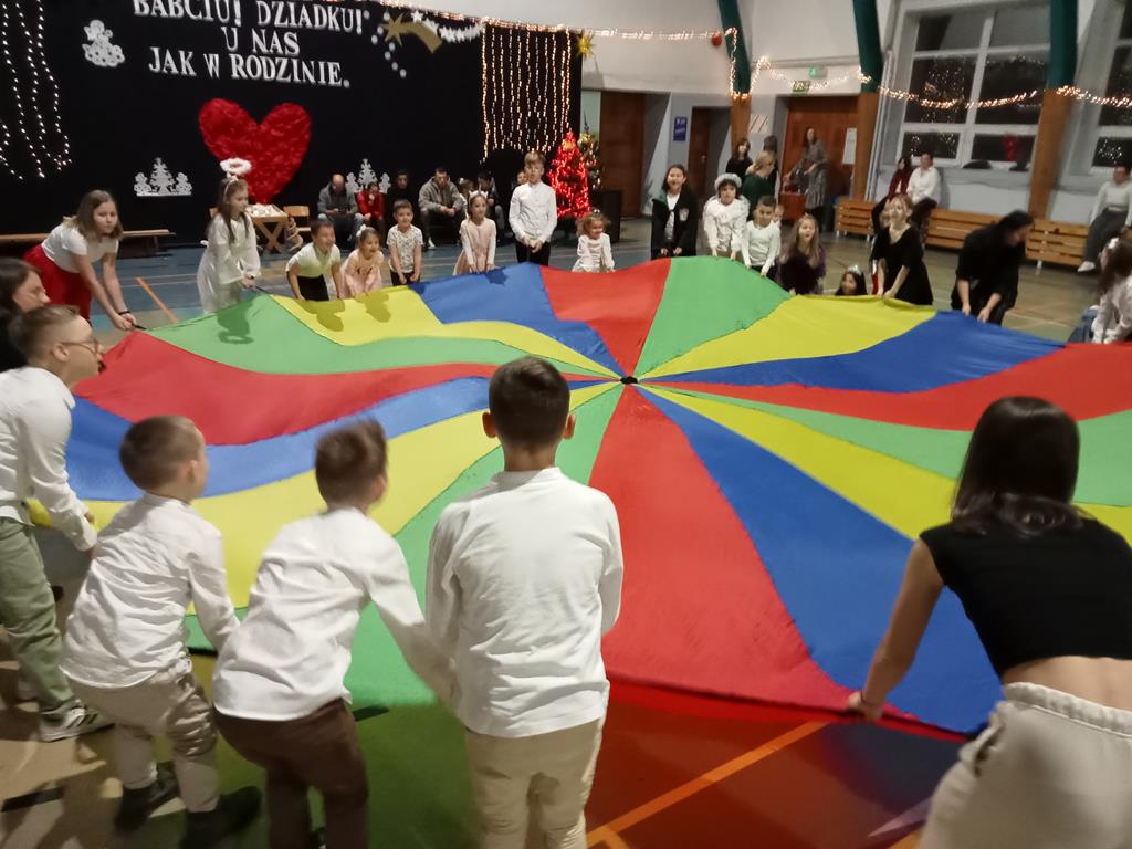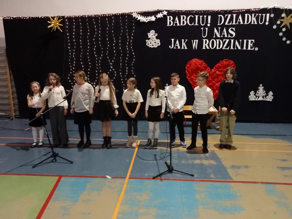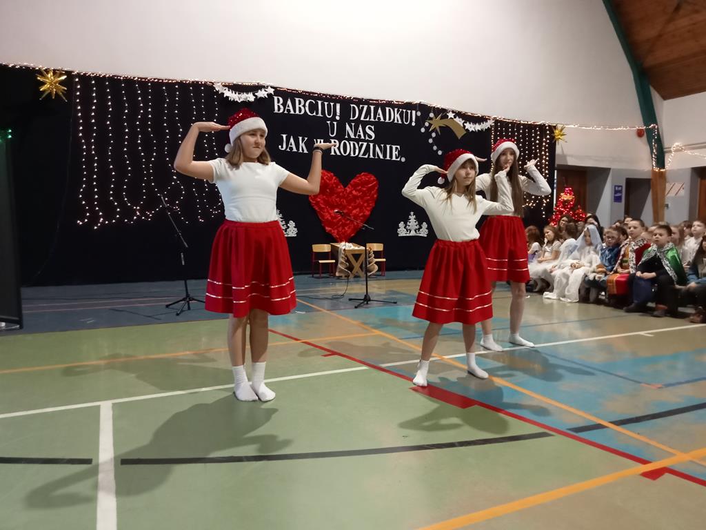Święto Babci i Dziadka jest wspaniałą okazją do wspólnego spotkania i biesiadowania, zabawy oraz kolędowania w ten noworoczny czas. Dziadkowie to wielki skarb dla wnuków i rodziców. Dlatego właśnie w dniu 17 stycznia wnuczki i wnukowie zaśpiewali, zagrali, recytowali, tańczyli i żartowali dla swoich ukochanych dziadków i babć. Rodzice przygotowali słodki poczęstunek. Potem wszyscy się bawili na sali gimnastycznej do późnych godzin wieczornych. Kulminacyjnym punktem był Święty Mikołaj, który wręczył prezenty. Był to czas spędzony bardzo rodzinnie, wesoło i przyjemnie.