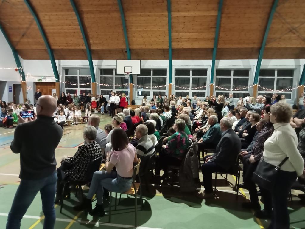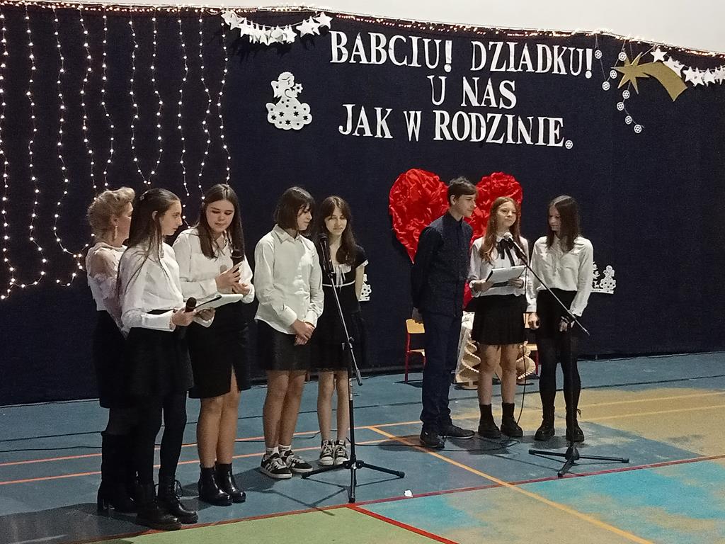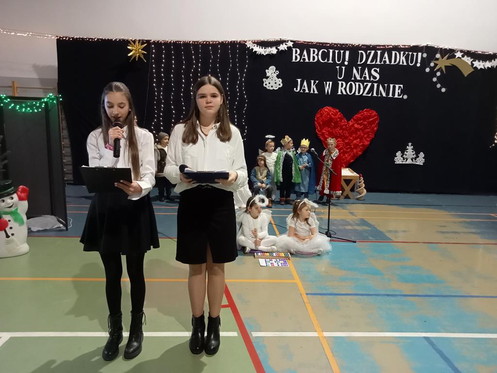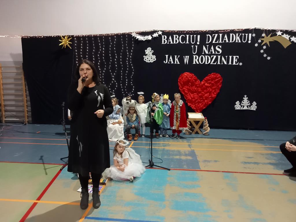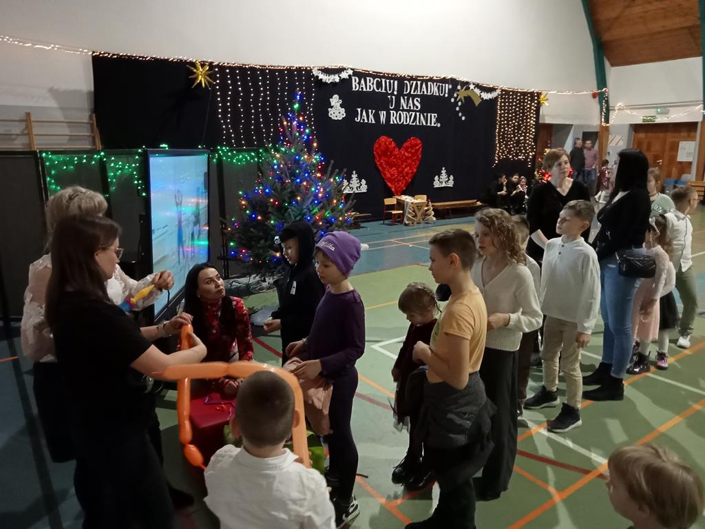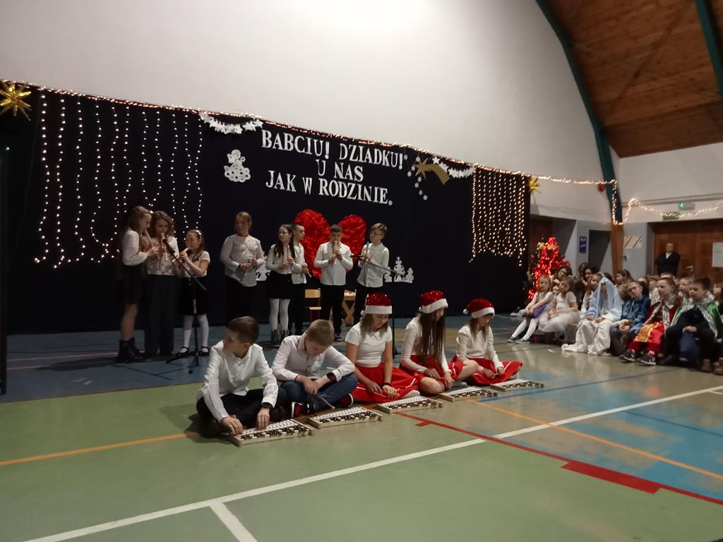 Święto Babci i Dziadka jest wspaniałą okazją do wspólnego spotkania i biesiadowania, zabawy oraz kolędowania w ten noworoczny czas. Dziadkowie to wielki skarb dla wnuków i rodziców. Dlatego właśnie w dniu 17 stycznia wnuczki i wnukowie zaśpiewali, zagrali, recytowali, tańczyli i żartowali dla swoich ukochanych dziadków i babć. Rodzice przygotowali słodki poczęstunek. Potem wszyscy się bawili na sali gimnastycznej do późnych godzin wieczornych. Kulminacyjnym punktem był Święty Mikołaj, który wręczył prezenty. Był to czas spędzony bardzo rodzinnie, wesoło i przyjemnie.