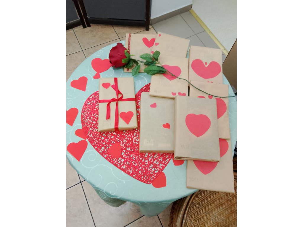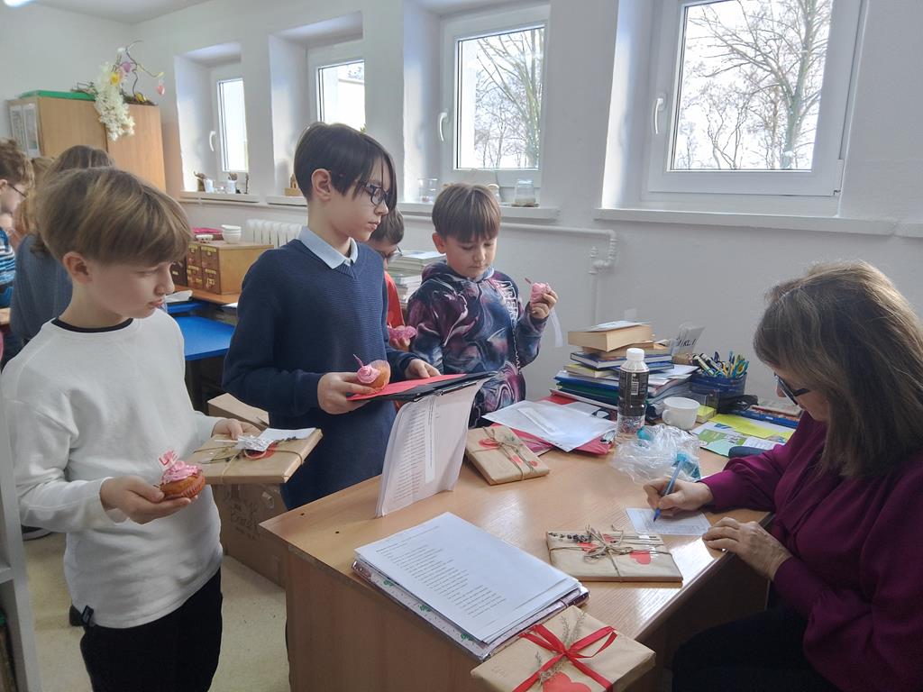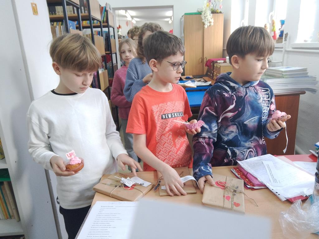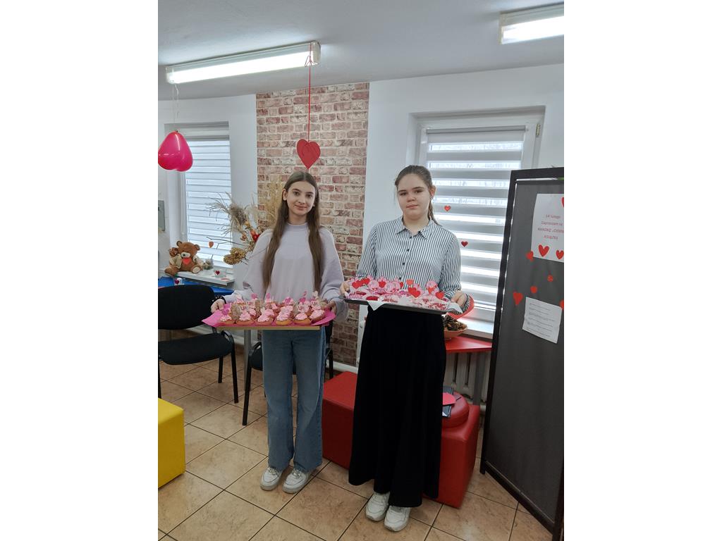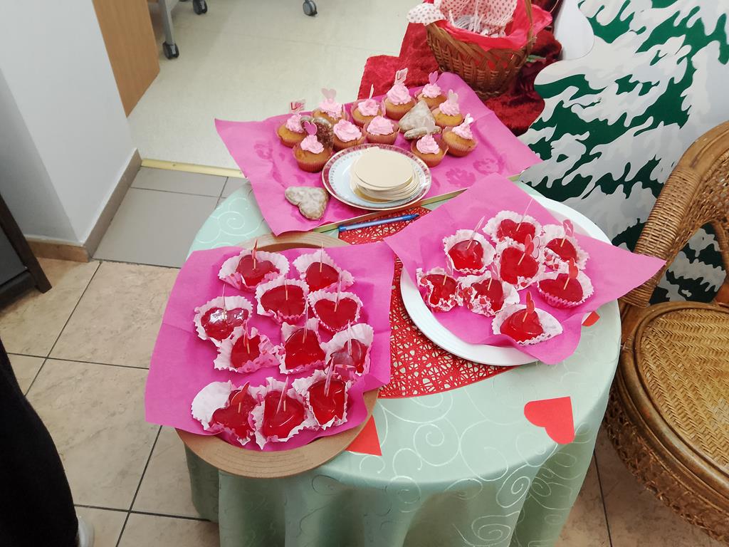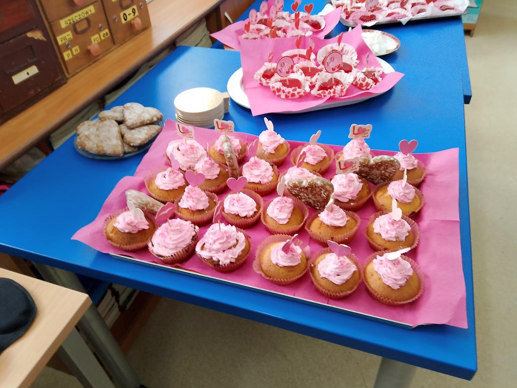 Na deser były słodkości przygotowane przez Samorząd Uczniowski. Babeczki, lizaki, galaretki wszystko w kształcie serduszek.