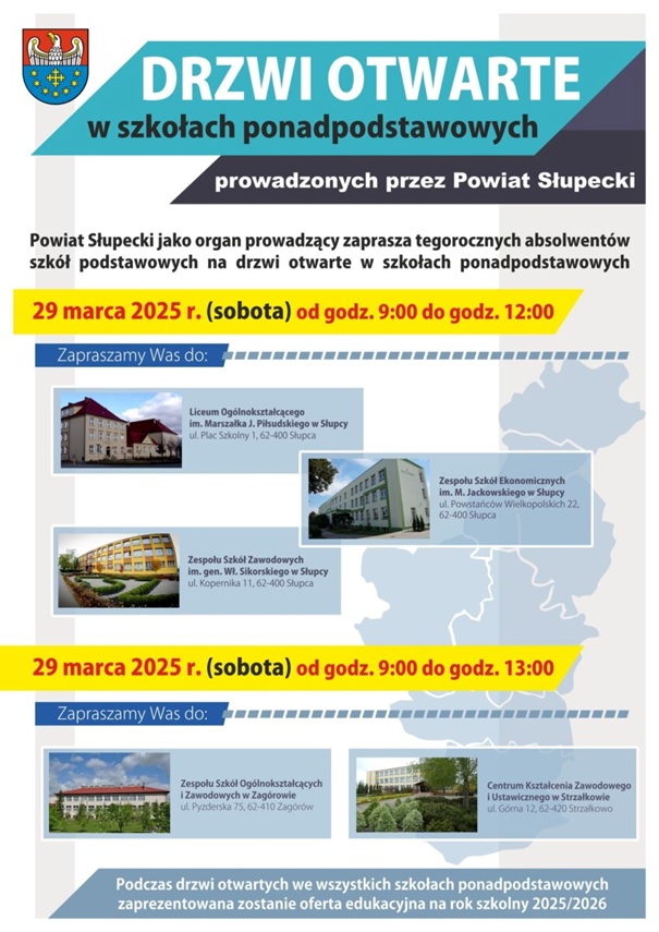 POWIAT SŁUPECKI ZAPRASZA NA DRZWI OTWARTE DO SZKÓŁ PONADPODSTAWOWYCH