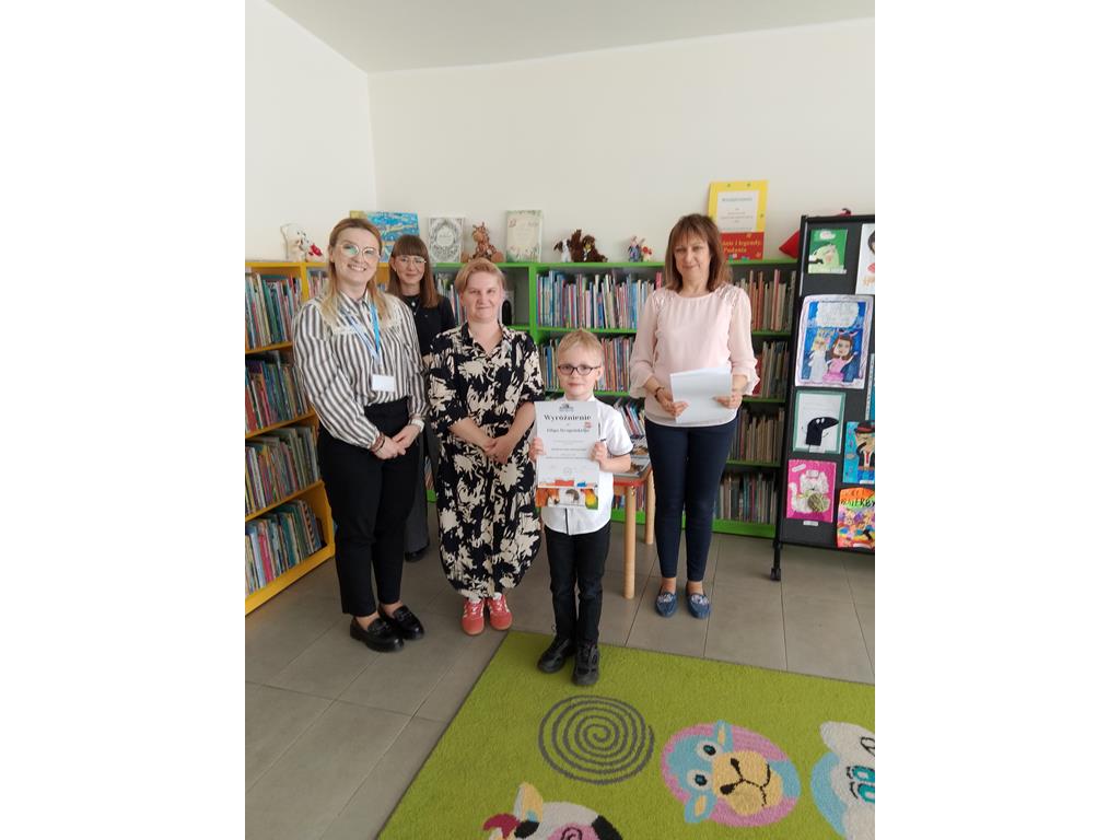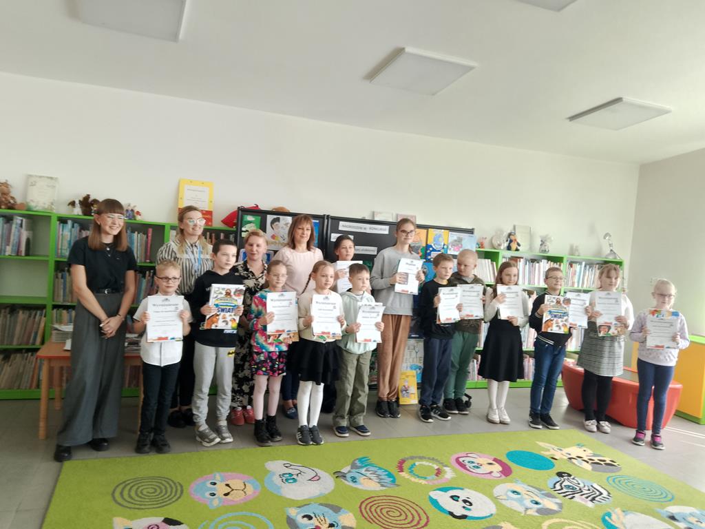 3 kwietnia w Miejskiej i Powiatowej Publicznej Bibliotece w Słupcy miało miejsce podsumowanie konkursu plastycznego pod tytułem „Okładka do mojej ulubionej książki”. Celem tego konkursu było zachęcenie dzieci do twórczej interpretacji świata książek oraz promowanie czytelnictwa w ramach Międzynarodowego Dnia Książki. Konkurs kierowany był dla dzieci ze szkół podstawowych powiatu słupeckiego z klas I –III. Zadaniem uczestników konkursu było przedstawienie ciekawą techniką nowej okładki do swojej ulubionej książki. Na konkurs wpłynęło 129 prac z 13 szkół naszego powiatu. Spośród tych prac komisja konkursowa nagrodziła 30. Wśród wyróżnionych znalazła się okładka do książki Astrid Lingren „Dzieci z Bullerbyn” którą wykonała Julia Andrzejewska z klasy III oraz okładka do książki Jana Brzechwy „Akademia Pana Kleksa” którą w ciekawy sposób przedstawił Filip Strugalski z klasy I. Wyróżnieni uczniowie otrzymali pamiątkowe dyplomy i nagrody książkowe.