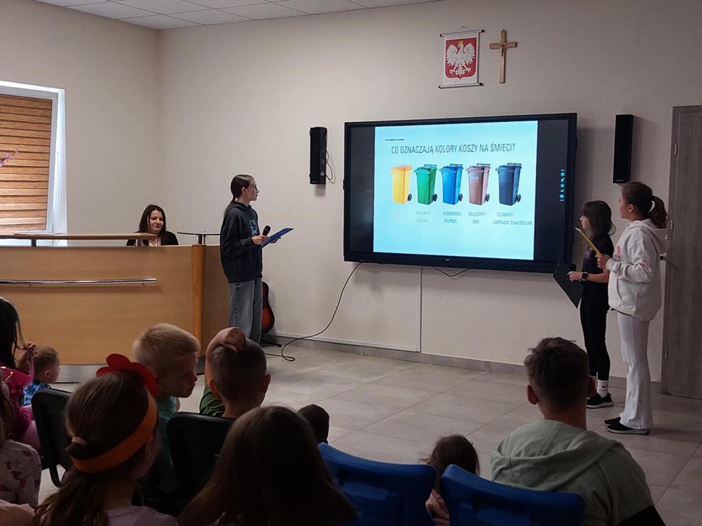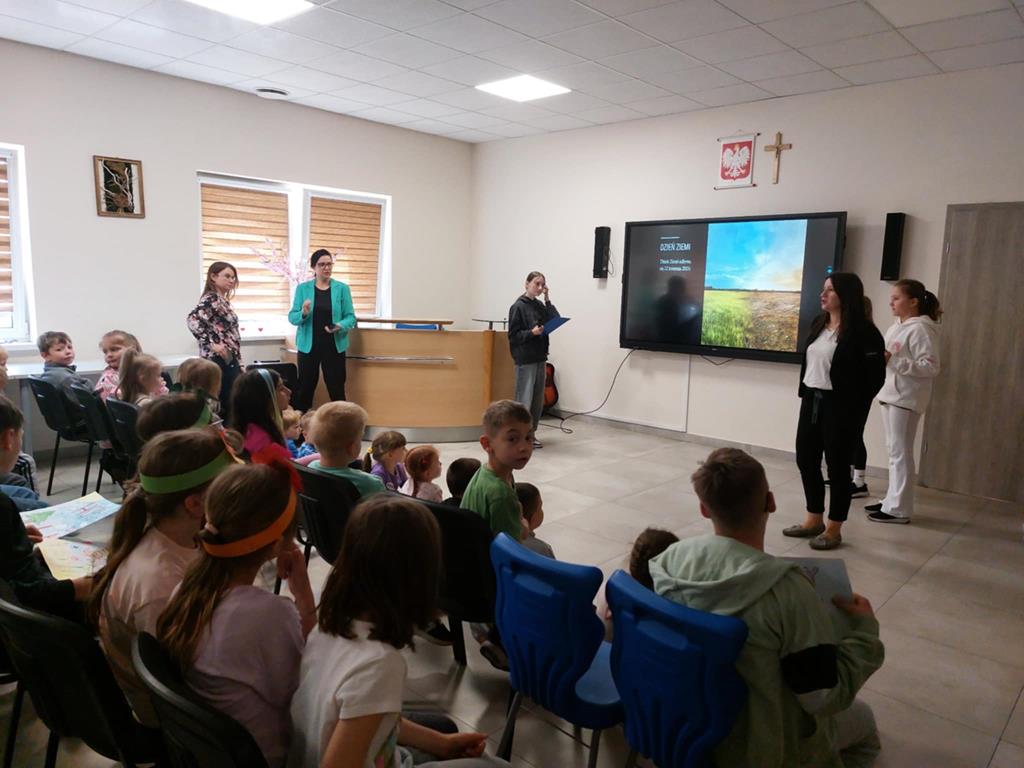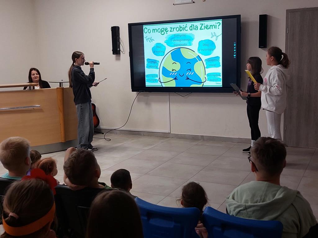 W piątek, 25 kwietnia, w naszej szkole obchodziliśmy Dzień Ziemi. Z tej okazji uczniowie klasy 5 pod opieką pani Anny Filipiec przygotowali interesującą prezentację na temat ochrony środowiska oraz sposobów zapobiegania jego degradacji. Piątoklasiści przypomnieli wszystkim, jak ważne jest dbanie o naszą planetę i zaprezentowali praktyczne sposoby, dzięki którym każdy z nas może przyczynić się do ochrony przyrody. Odbyło się również sprawdzenie wiadomości z wysłuchanej prezentacji w postaci pytań kontrolnych, na które uczniowie bardzo chętnie odpowiadali.