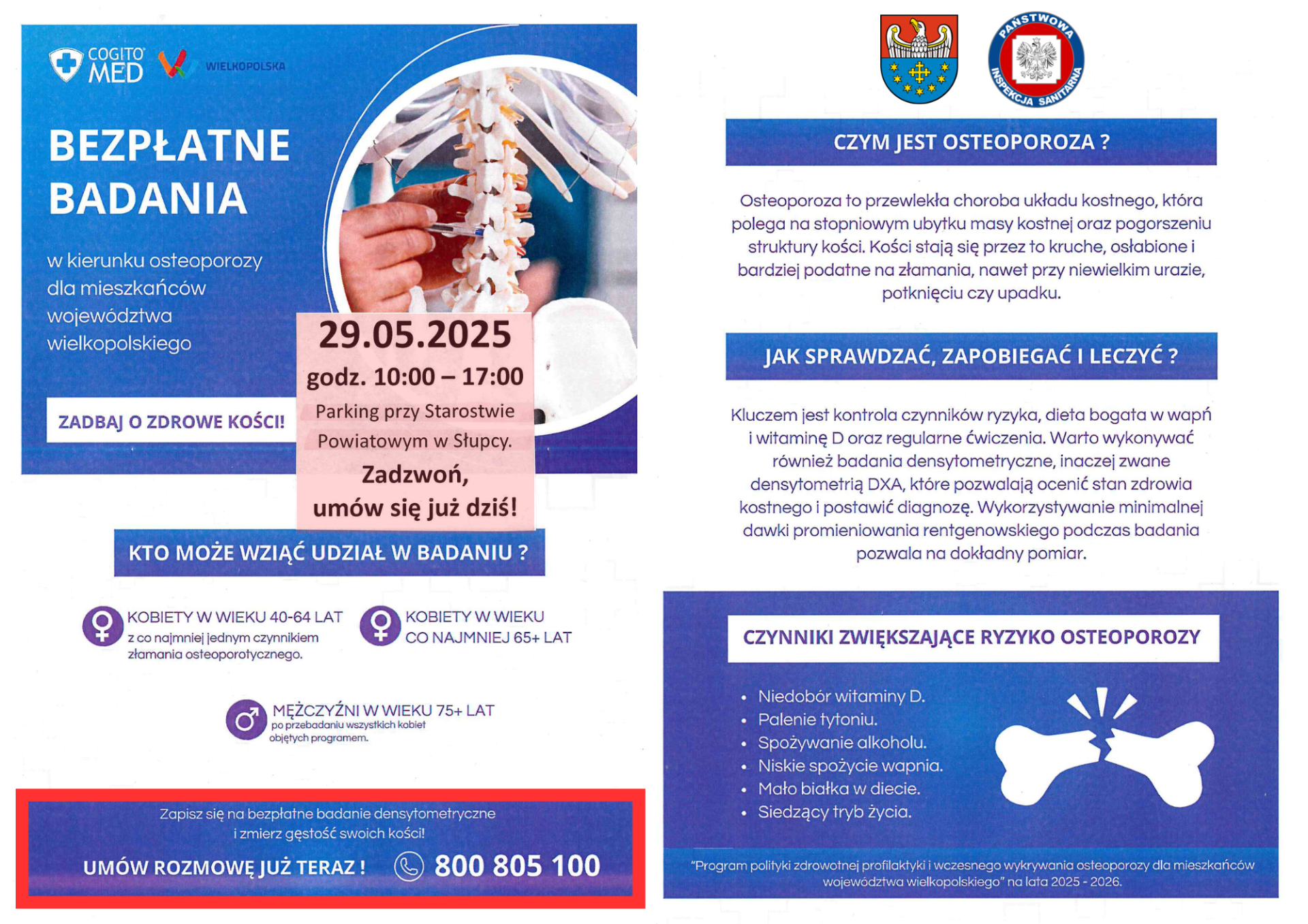w bezpłatnych badaniach w kierunku osteoporozy – jednej z najczęstszych chorób układu kostnego,