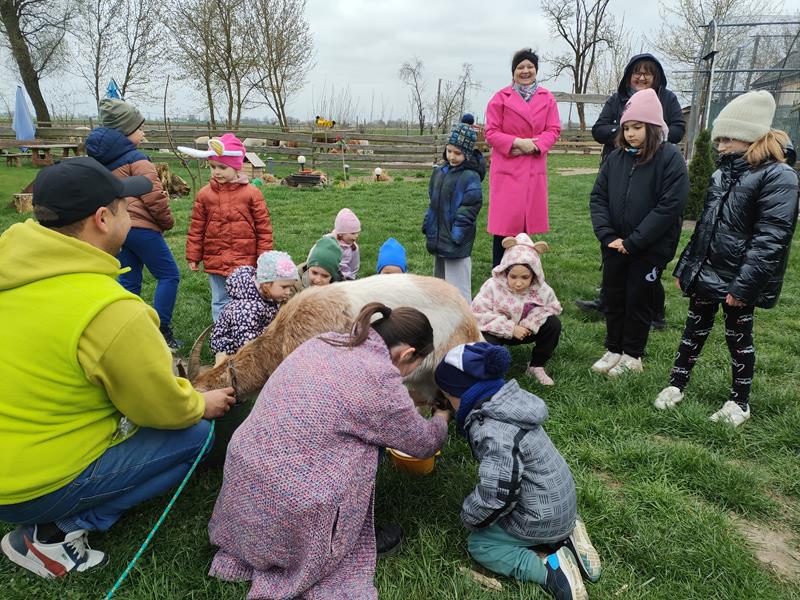 Dnia 11.04.2025 r Oddział Przedszkolny odwiedził Agroturystykę „ Wiejskie Podwórko” w Poniatówku. Na dzieci czekało wiele atrakcji między innymi : szukanie jajek, zabawy na placu zabaw, karmienie zwierząt, warsztaty plastyczne, dojenie kozy, a także wspólne pieczenie kiełbasek na ognisku.