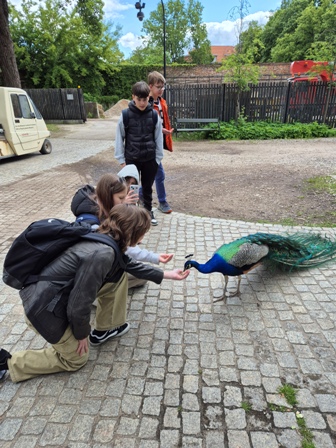 Po Warszawie oprowadziła nas Pani przewodnik, która bardzo ciekawie opowiadała historie i anegdoty o odwiedzanych miejscach. Zobaczyliśmy Pałac Kultury i Nauki, zmianę warty przy Grobie Nieznanego Żołnierza. Usłyszeliśmy o „Ławeczkach Chopina” i wysłuchaliśmy utworu na jednej z nich, które są ustawione w różnych miejscach Warszawy. Z kolei w ogrodach Łazienek Królewskich - jednym z najpiękniejszych parków w Warszawie spacerowaliśmy ścieżkami oraz alejkami wśród drzew, krzewów, kwiatów i ptaków podziwiając przyrodę i zabytki m.in. Pałac na Wyspie, Pomnik Chopina.