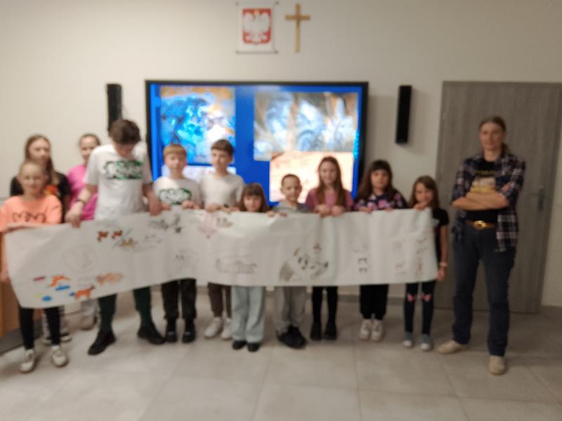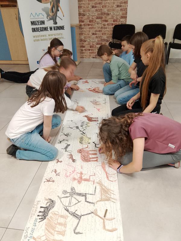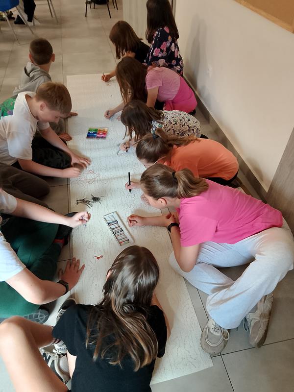 Dużą frajdę uczniom sprawiło tworzenie malowideł naściennych . Tu uczniowie wykazali się dużą inwencją twórczą. Na zakończenie wieczoru sympatycy paleontologii obejrzeli fragment I części filmu „Avatar” w reżyserii J. Camerona. Dla wszystkich uczestników seansu SU przygotował solidną porcję popcornu . Po tak rozpoczętym udanym wieczorze uczniowie klas IV-V udali się na dalsze zajęcia związane ze szkolną nocowanką .