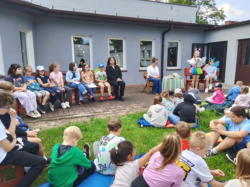 To już kolejny piknik czytelniczy w naszej szkole. Zorganizowaliśmy go z okazji przypadającego w dniach 1 -7 czerwca Ogólnopolskiego Tygodnia Czytania Dzieciom w ramach akcji „Cała Polska czyta dzieciom”. Hasło przewodnie XXIV edycji brzmi „ Czytanie zbliża ‘’. To coroczne święto, promujące czytanie najmłodszym. Ideą tej akcji jest zaszczepienie i pielęgnowanie w młodych czytelnikach zamiłowania do magicznego i fascynującego świata literatury. Akcja już od ponad dwóch dekad jednoczy osoby i instytucje angażujące się w promocję czytelnictwa. Podczas piknikowej uczty dyrektor szkoły Pani A. Kopczyńska ,przeczytała dzieciom bajkę Jana Brzechwy „Rozmawiała gęś z prosięciem ‘’. Uczennice klasy 4 , Zuzia i Gabrysia, które wcieliły się w role zawodowych moli książkowyc , przedstawiły słuchaczom 10 korzyści płynących z czytania książek . Mamy nadzieję , że argumenty przekonały uczniów klas 0-3 , że książki to jedne z najlepszych rzeczy , które stworzył człowiek .Główną atrakcją tego spotkania było wysłuchanie dalszych losów „BANANA ‘’. Tym razem z zaciekawieniem słuchaliśmy perypetii głównego bohatera we Francji .Z niecierpliwością czekamy na dalsze jego historie. Basia i Maja już mają wspaniałe pomysły na dalsze części tego opowiadania . Gratulujemy pisarskiego sukcesu .Marzycie o tym, by zostać pisarzem? Nic prostszego jeśli lubisz czytać .Czytanie pobudza umysł do twórczej pracy i rozwija wyobraźnię . Bez względu na wiek , jeśli jesteś przysłowiowym molem książkowym , możesz napisać swoją książkę . Serdecznie zapraszamy by pójść w ślady Basi i Mai .