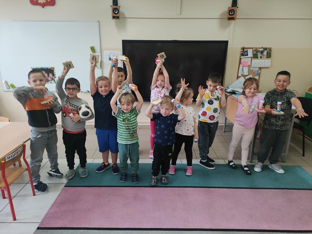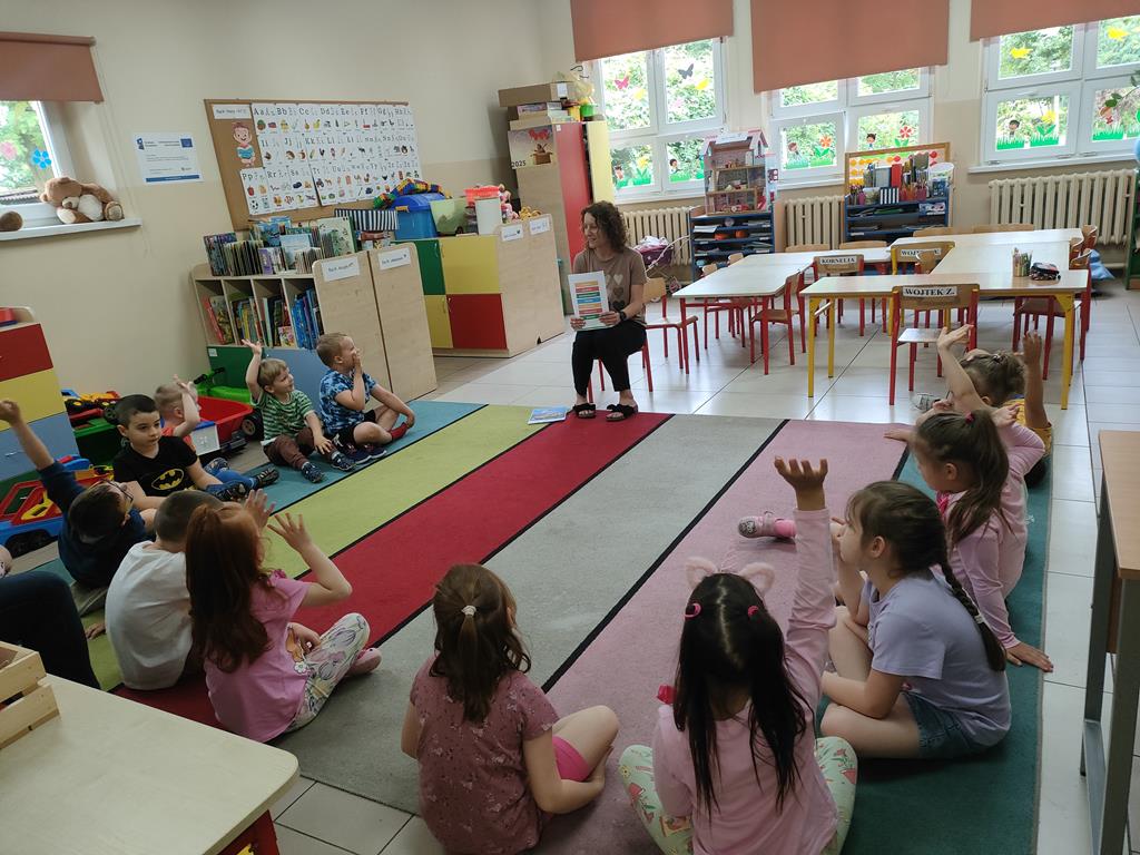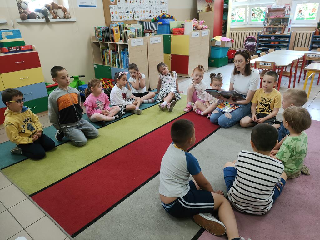 Czerwiec był miesiącem bardzo intensywnym dla naszych przedszkolaków. Był to czas zabawy w ogrodzie przedszkolnym , na Sali gimnastycznej, a także czas przygotowania do zakończenia roku przedszkolnego. W ramach Klubu Czytających Rodziców odwiedziła nas Pani Marta, mama Wojtka i Matyldy. Mieliśmy przyjemność gościć Panią z biblioteki raz Pana Macieja, który zaprezentował nam zawód kierowcy . Niespodzianką dla dzieci z Oddziału Przedszkolnego oraz klas 1-3 była wizyta Straży Pożarnej ze Słupcy. Swoje urodzinki obchodzili Bartłomiej oraz Wojtek W. Dziewczynki z naszej grupy reprezentowały nas w Gminnym Przeglądzie Tańca I Piosenki Przedszkolnej. Braliśmy udział w Dniu Języków Obcych, Dniu Sportu oraz Pikniku Czytelniczym. Włączyliśmy się w akcje „Dzień w piżamie”. Z okazji Dnia Dziecka wykonaliśmy bransoletki z koralików. Na zakończenie zajęć dydaktycznych zagraliśmy w podchody dydaktyczne, rozwiązując zagadki oraz zadania. W ostatnim tygodniu czerwca byliśmy na wycieczce w Borysewie wraz z rodzicami oraz dziećmi z klasy 1 i 3, a także mieliśmy zajęcia adaptacyjne podczas których bawiliśmy się masą sensoryczną odkrywając ukryte w niej zwierzęta oraz dinozaury, jak również mieliśmy spotkanie z Kicią Kocią, która wprowadziła nas w klimat wakacyjny. Dziękujemy za ten wspaniały rok i życzymy wszystkim udanych i bezpiecznych wakacji .