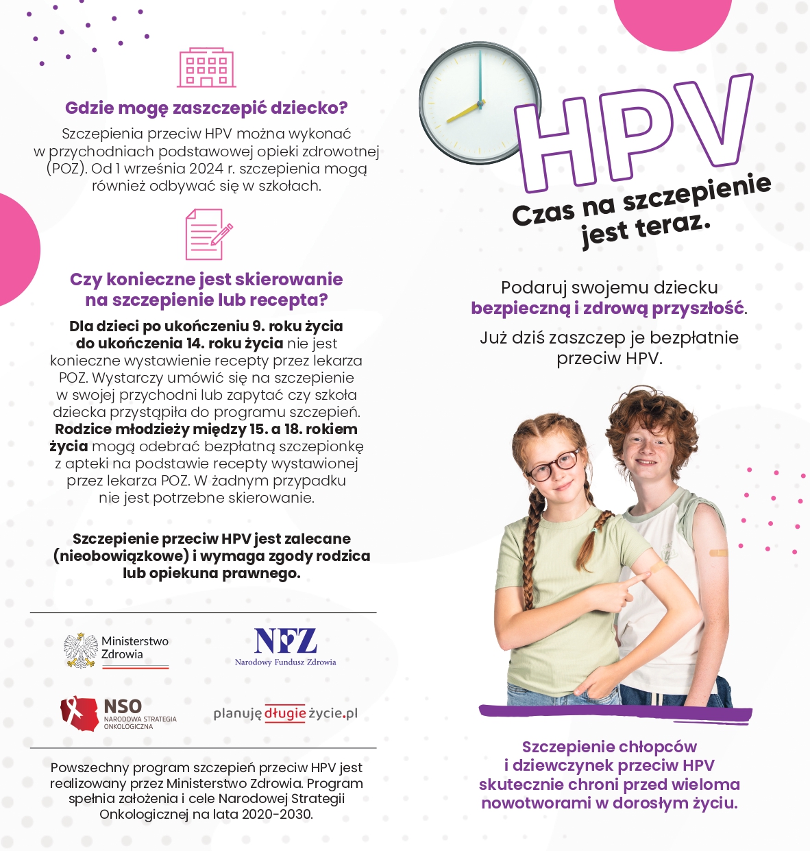 INFORMACJA - PROGRAM SZCZEPIEŃ ZALECANYCH PRZECIW WIRUSOWI BRODAWCZAKA LUDZKIEGO (HPV)