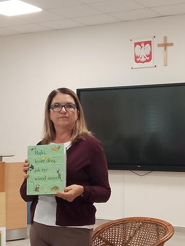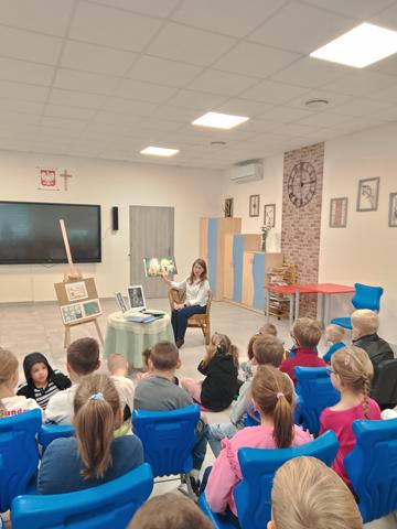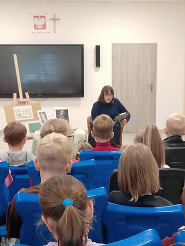 Na spotkaniu zorganizowanym przez bibliotekarkę panią W. Frydrychowicz uczniowie klas 0-III poznali jedną z 300 fraszek Jana Kochanowskiego „Na zdrowie’’, którą przeczytała pani Kamilla Wożniak .Z fraszki tej uczniowie dowiedzieli się , że nie ma nic cenniejszego nad zdrowie i należy o nie dbać każdego dnia . Następnie pani pedagog Bożena Koniecka przeczytała fragmenty książki hiszpańskiej psycholog i pedagog Begonii Ibarrola „Bajki , które uczą jak żyć wśród innych”. Uczniowie poznali część przygód sympatycznego bohatera , miłego Indianina z Amazonii . Młodym słuchaczom zwrócono uwagę na takie wartości jak umiejętność współpracy, odwaga, uprzejmość czy uczciwość . Jeśli zostaną one przez dziecko przyswojone , staną się częścią jego tożsamości to będą prowadzić je w dorosłym życiu. Z kolei pani pedagog Patrycja Kopaczewska przeczytała dzieciom książkę Ewy i Marty Dahlig „Ty” .To książka , która pomaga dziecku uwierzyć w siebie , akceptować swoje ciało , emocje i wyjątkowe spojrzenie na świat .Buduje pewność siebie dziecka , przełamuje stereotypy , pokazuje , że każdy jest wyjątkowy, wartościowy, niepowtarzalny i ważny …taki , jaki jest