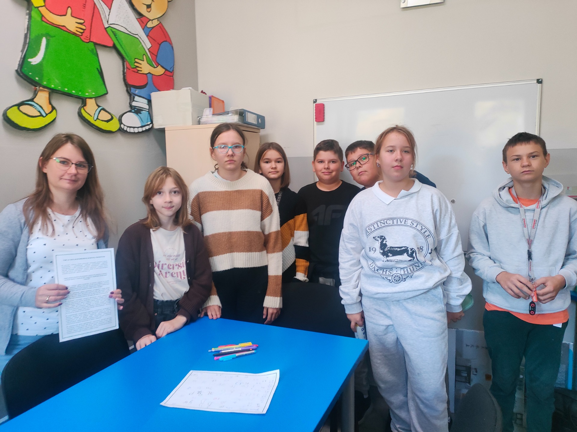 Piątek był dniem przeciwdziałania przemocy rówieśniczej. W związku z tym uczniowie oraz nauczyciele zostali zapoznani z „Paktem przeciwdziałania przemocy rówieśniczej”, który dotyczy budowania środowiska wolnego od przemocy. Dokument podkreśla, że każde dziecko ma prawo dorastać w świecie bez hejtu i agresji, w atmosferze szacunku i dialogu. Wszyscy składając swój podpis zobowiązali się reagować na krzywdę, wspierać osoby doświadczające niesprawiedliwości, sprzeciwiać się nienawiści, a także wspólnie tworzyć bezpieczną i przyjazną szkołę, gdzie relacje oparte są na empatii i solidarności. Pakt wraz z podpisami został umieszczony na gazetce szkolnej, aby każdy z zainteresowanych mógł ponownie się zapoznać z treścią dokumentu.