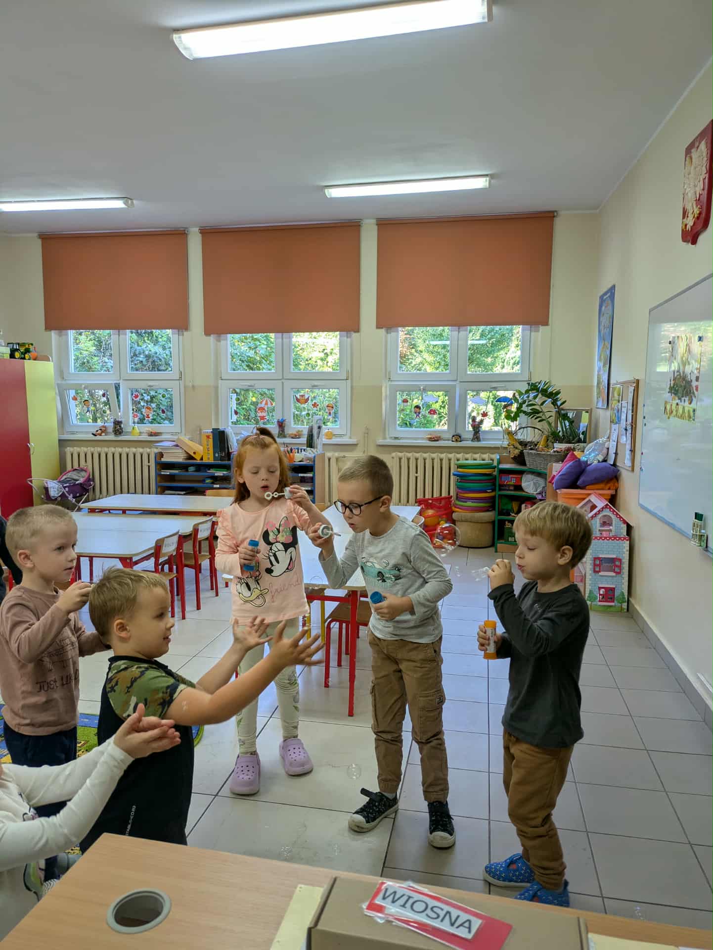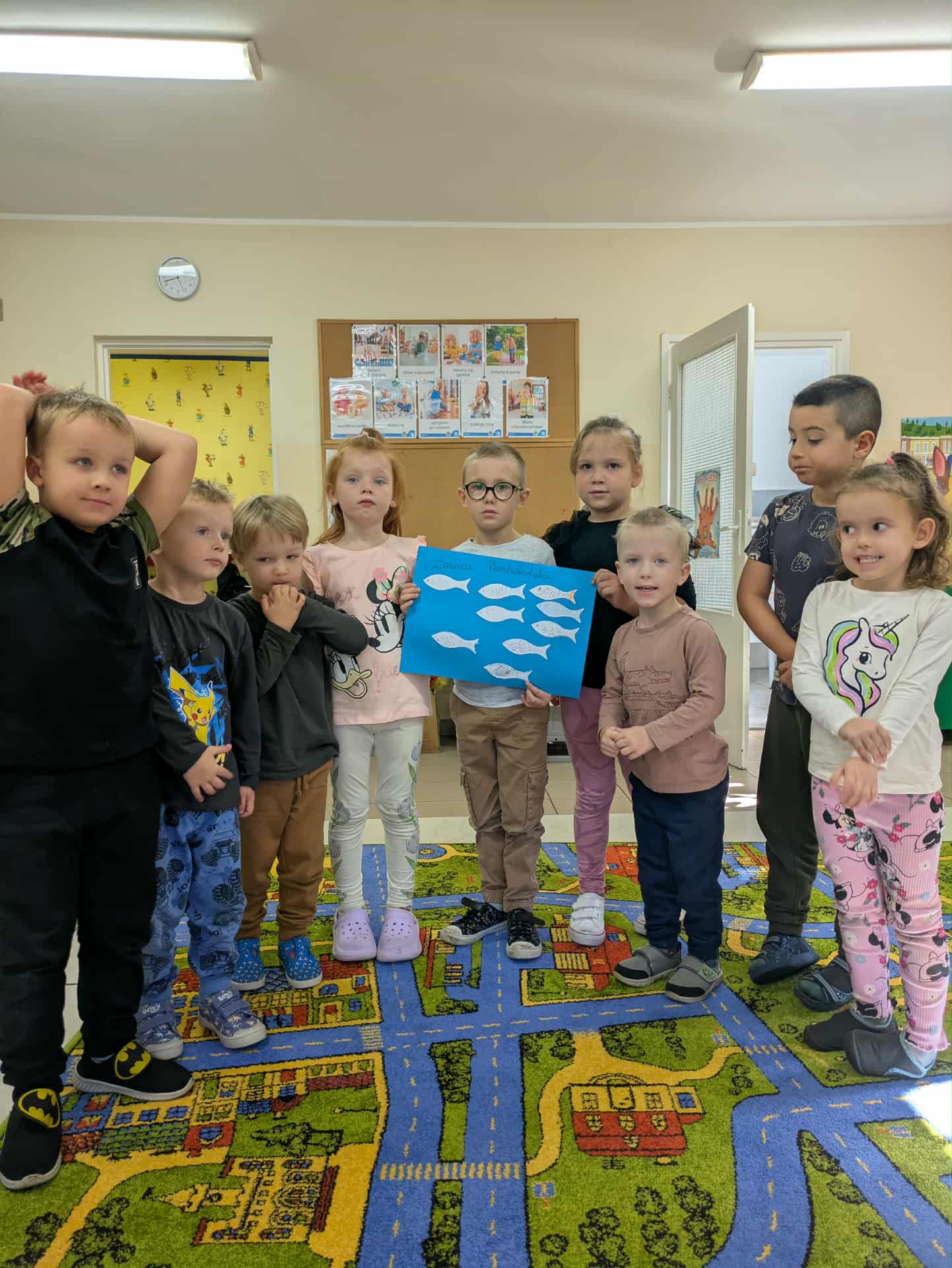 Dzieci z Oddziału Przedszkolnego uczestniczyły w zajęciach dotyczących współpracy w grupie, wzajemnego wsparcia oraz szacunku i akceptacji. Tematem przewodnim była „Ławica ryb”. Przedszkolaki zapoznały się z pracą artystyczną prezentującą ryby wyryte w skale. Następną aktywnością była zabawa ruchowa „rybki w oceanie”. Dzieci zamieniły się w rybki, na zmianę rytmu wygrywanego przez nauczyciela dobierały się w pary, ale za każdym razem ktoś zostawał sam. Podsumowując zabawę dzieci wypowiedziały się, jakie emocje im towarzyszyły. Na zakończenie przedsięwzięcia nauczyciele wraz z dziećmi stworzyli plakat „ Ławicę przedszkolaków”.